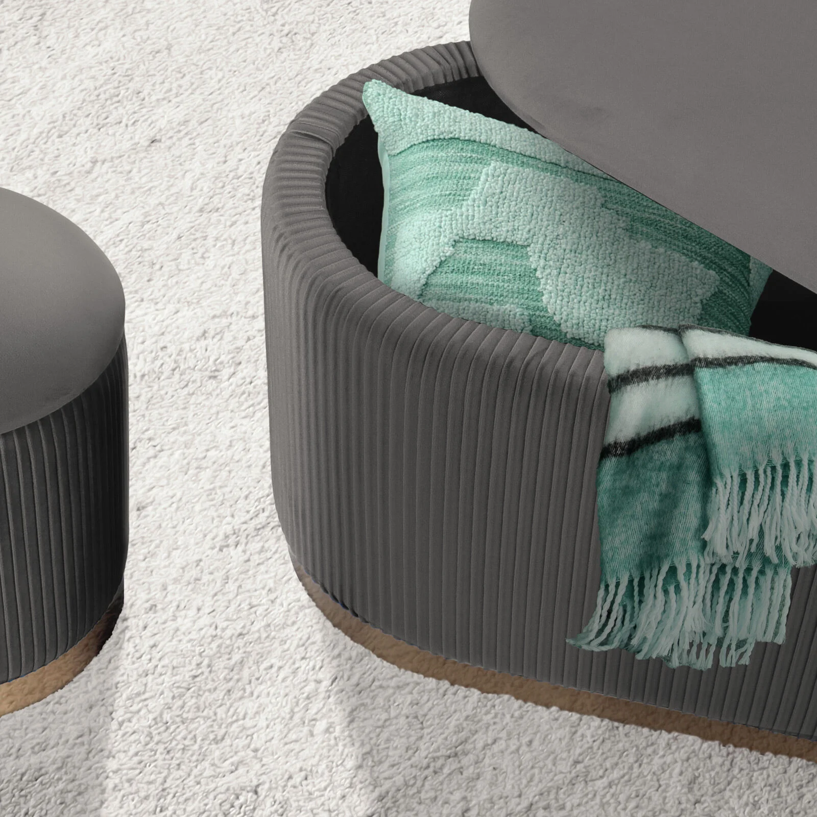 Upholstered in velvet with a gentle pleated finish, they bring a soft, polished look to bedrooms, living areas or dressing spaces. The smaller ottomans nest neatly inside the large one for easy storage, and non-slip base pads help protect your floors.