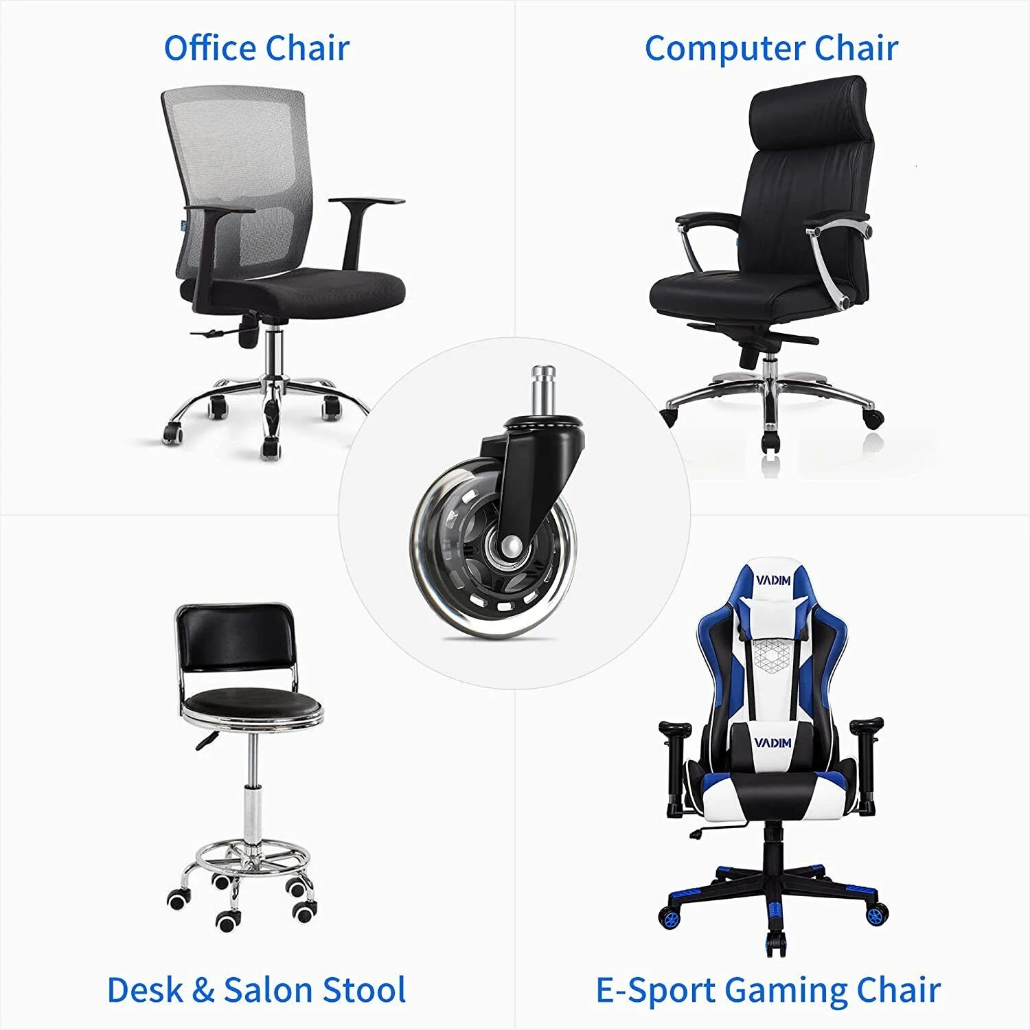 3 Swivel Rollerblade Chair Wheels, 7/16 Stem, All Floors - 5 Pack