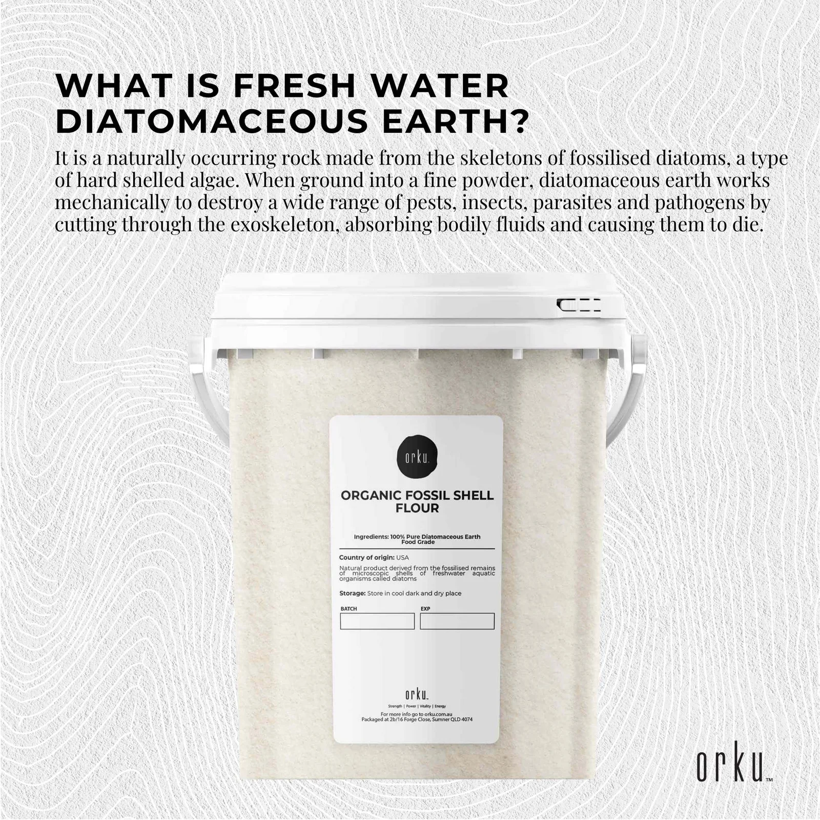 It is a naturally occurring rock made from the skeletons of fossilised diatoms, a type of hard shelled algae. Food grade diatomaceous earth is chemical free and non toxic.