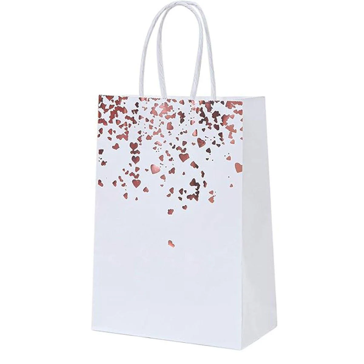 These beautifully crafted kraft paper gift bags feature delicate heart patterns and luxurious gold foil accents, making them perfect for a variety of occasions such as weddings, parties, and gift packaging. Designed with simplicity and elegance, they offer comfortable handles and a range of colour options to add a touch of sophistication to your gifts. These bags are not only eco-friendly but also durable, making them ideal for celebrations and gatherings.