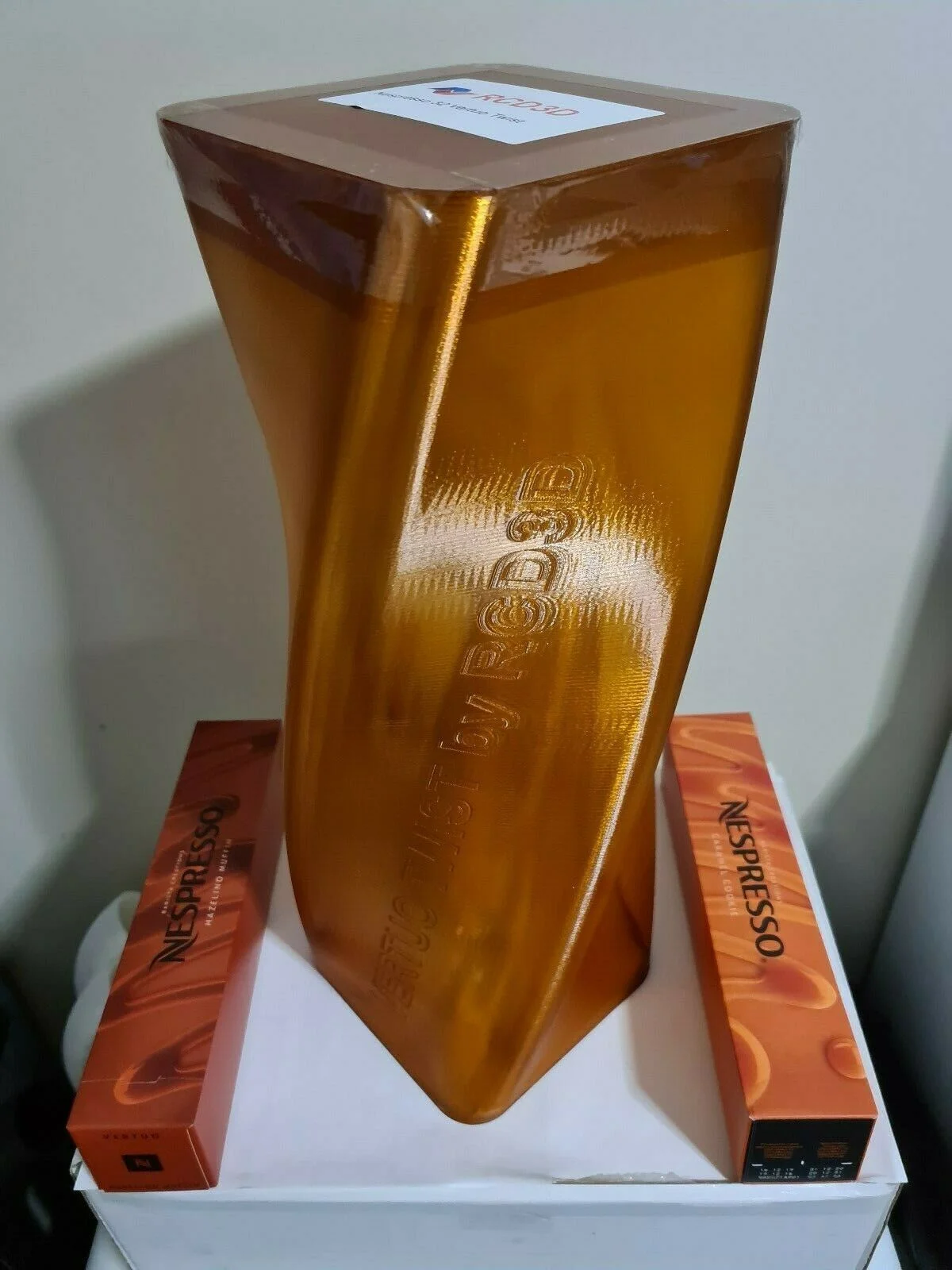 These coffee pod holders are 3D printed in a tough durable plastic allowing features not available in traditional injection moulding processes.