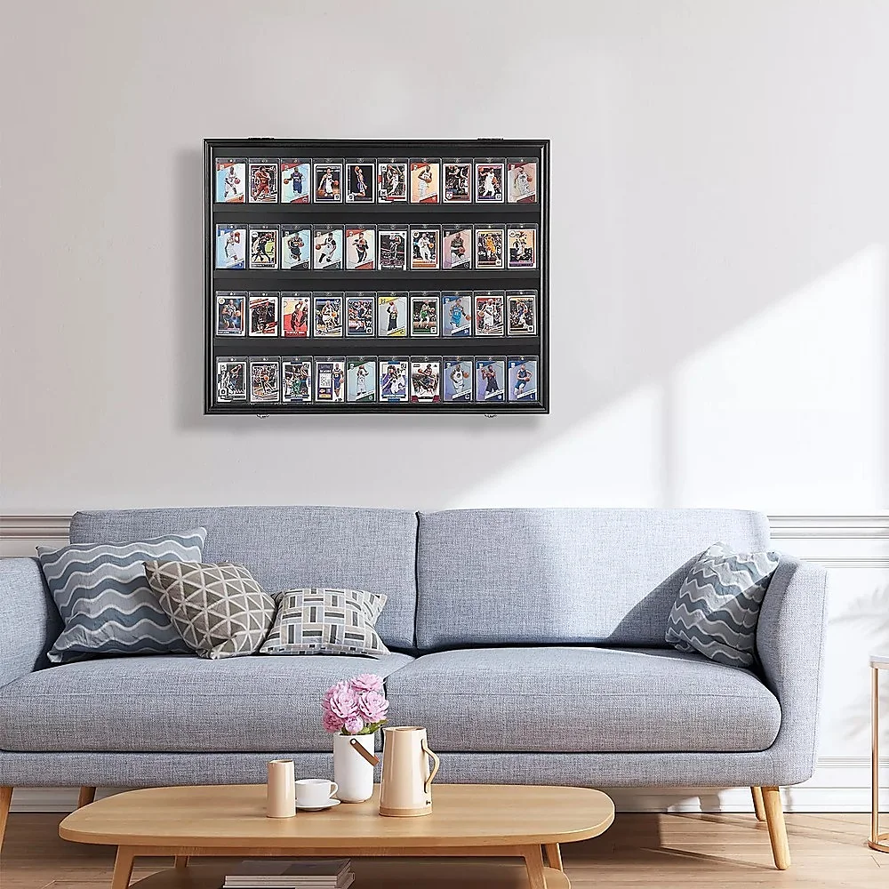 Show off your prized sports card collection with our high-quality, UV-resistant display case! Crafted with a sleek matte black wood frame and crystal-clear PC glass panels, this case provides exceptional clarity, protection, and durability. Designed to fit up to 36 graded cards, it ensures your collectibles remain secure, vibrant, and well-preserved for years to come.