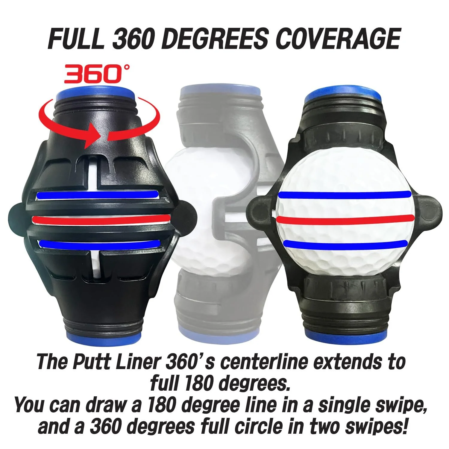 360 Golf Ball Line Marker with 2 Pens Full Coverage Alignment Tool for Putt, Driver Irons (Blue)