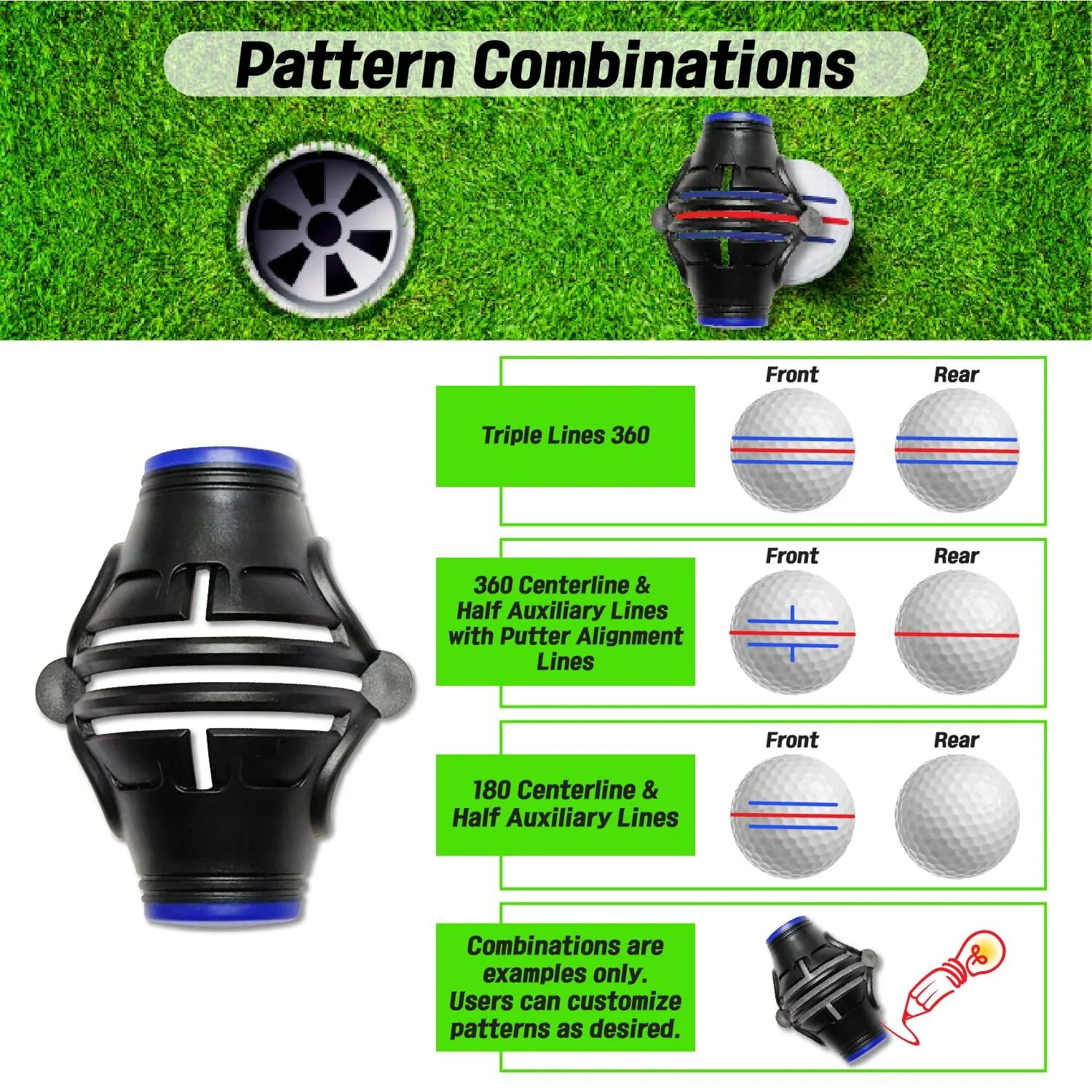 Elevate your putting accuracy and alignment with the 360 Golf Ball Line Markera revolutionary tool designed to help golfers of all levels visualize their target line with precision. This innovative device allows you to draw perfect centerlines, auxiliary lines, and custom patterns on your golf ball using two included markers (blue and black). The ergonomic design enables full 180-degree strokes in one swipe and complete 360-degree coverage in just two movements by rotating the marker holder. With built-in guides, you can create triple-line setups, crosshairs, or personalized markings to match your putters alignment. Whether practicing at home, on the driving range, or during tournament play, this tool enhances focus, improves aim, and builds confidence. Ideal for use with putters, drivers, and irons, it ensures consistent ball alignment every time. The durable plastic construction resists wear and tear, while the compact size makes it easy to carry in any golf bag. Perfect for beginners and pros alike, this is a must-have training aid that delivers measurable results.