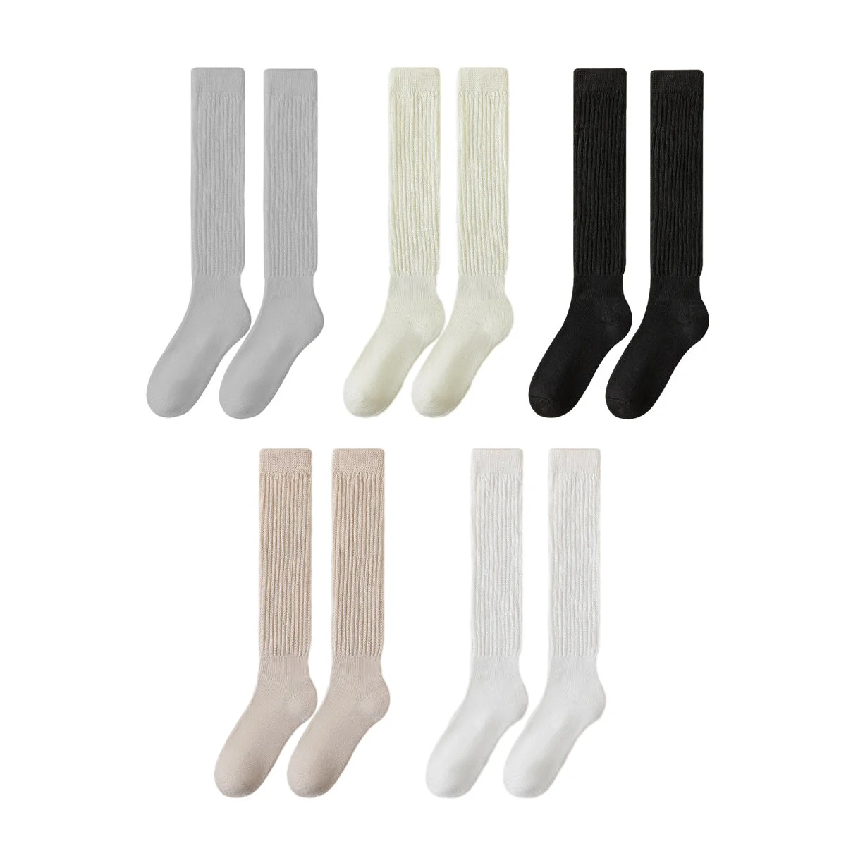 Stay cosy and stylish with this set of calf socks, perfect for autumn and winter. These socks are designed for versatility with two ways to wear – either stacked for a fashionable slouch look or pulled up for a sleek, streamlined style. Crafted from premium warm fabric, they provide superior comfort and warmth for your feet during colder months. The socks come in five elegant colours, allowing you to match them effortlessly with your outfit. Ideal for both casual and formal wear, these socks are a must-have for your wardrobe.