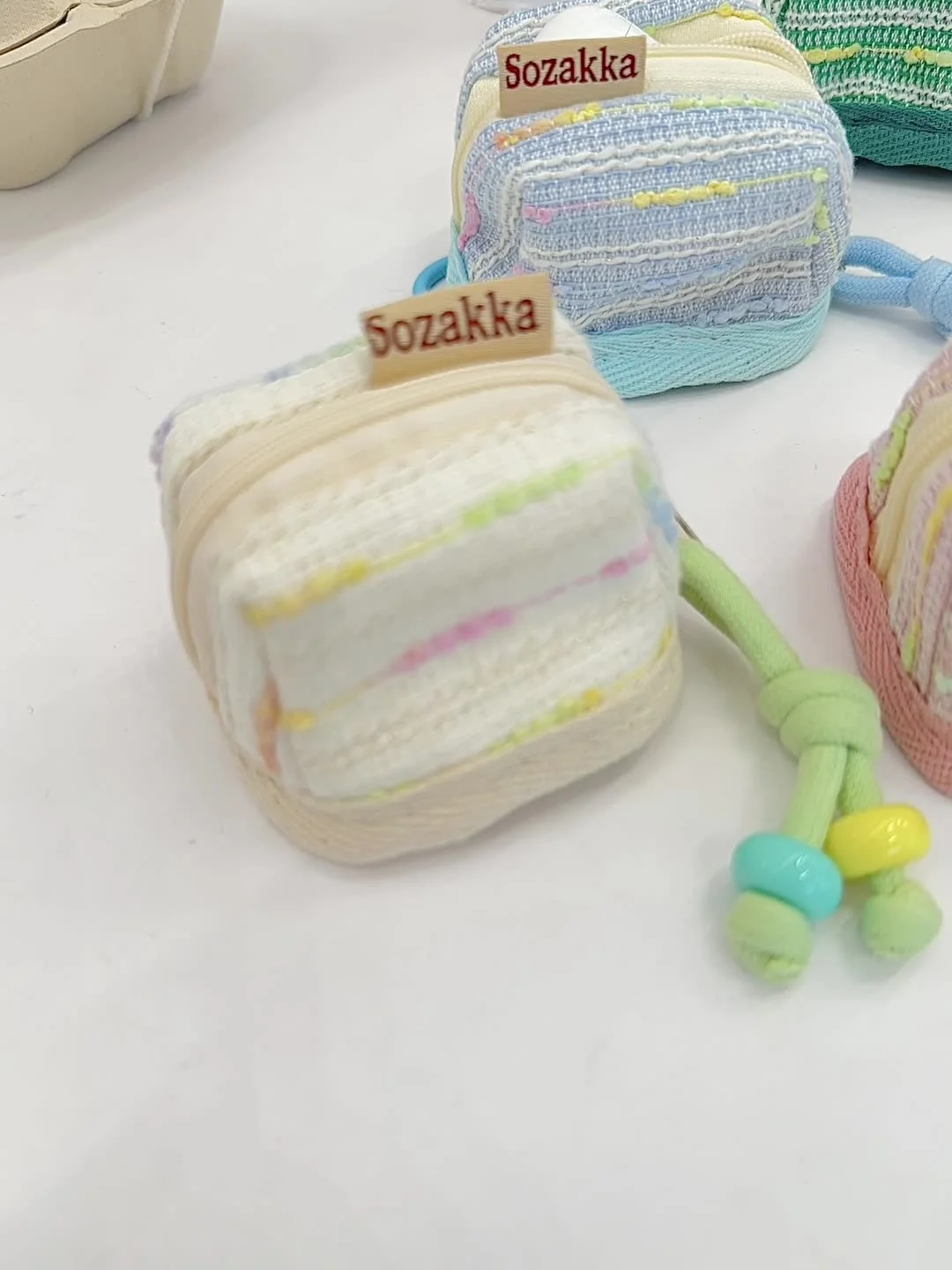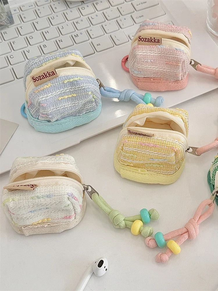Protect your small essentials in style with this adorable miniature backpack pouch. Perfectly sized for earphone cases, coins, keys, or other tiny treasures, this pouch is both charming and functional. It is crafted with a beautifully textured woven polyester exterior and features a soft poplin lining to keep your items safe. The secure zipper closure ensures everything stays in place, while the attached decorative knotted cord lanyard with bead details makes it easy to carry or clip onto a larger bag.