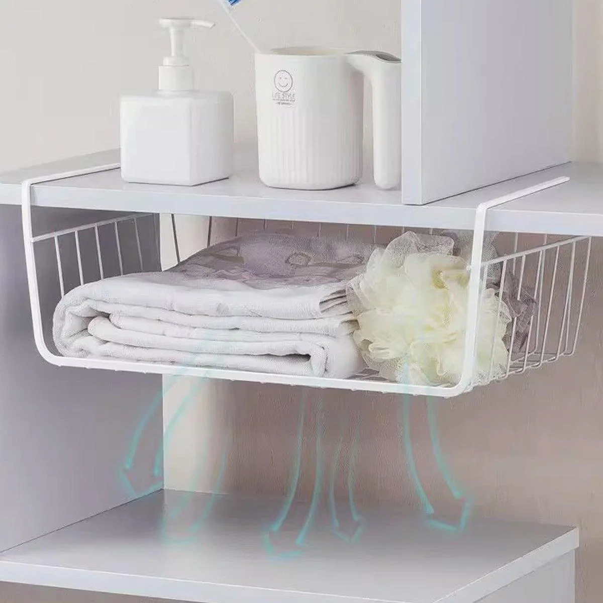 Space-Saving Solution: Utilizes the unused space beneath shelves to add extra storage without taking up room elsewhere.