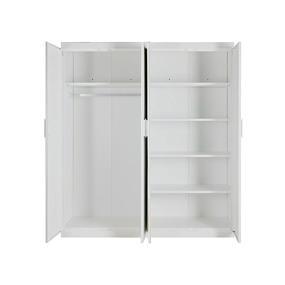 Upgrade your bedroom with this 4 Door White Wardrobe, a stylish and functional storage solution crafted from durable steel plates. Finished with powder coating and accented with white metal handles, this wardrobe brings modern elegance and long-lasting performance to any space.