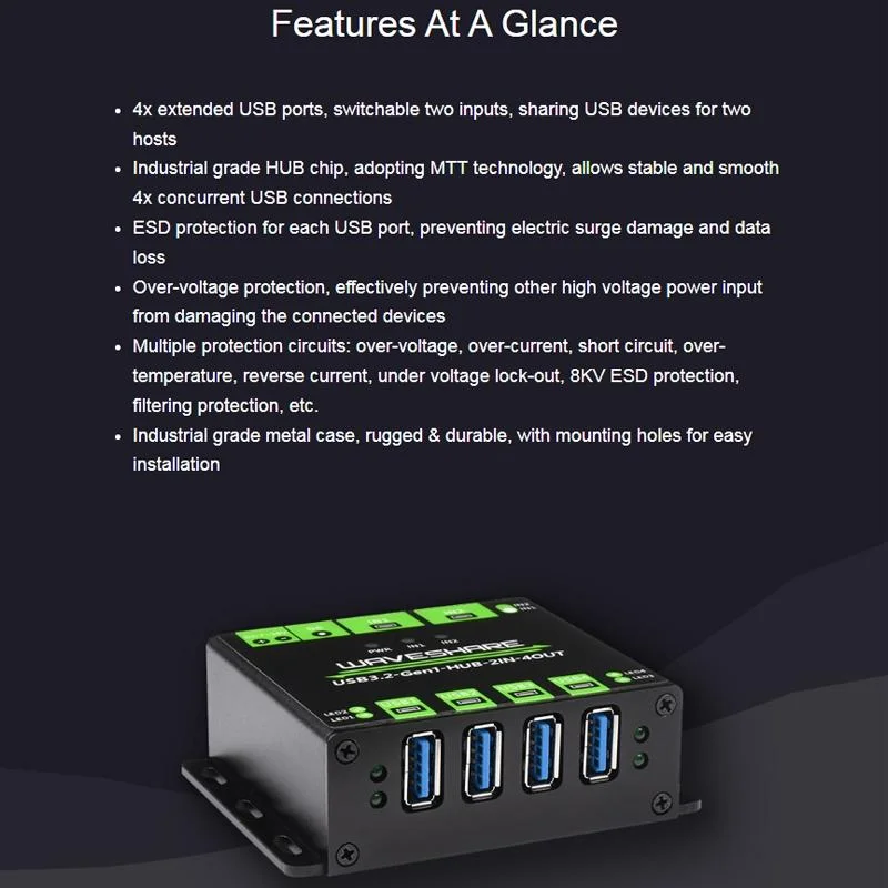 Package Includes:• 1 x 4-Port Usb 3.2 Hub With Dual Host Switching