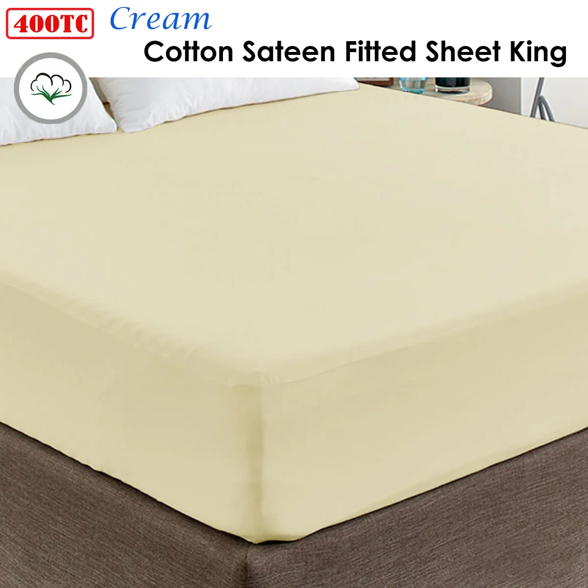 This soft 400TC Cream 100% Cotton Sateen Fitted Sheet King 40cm Wall will effortlessly style and protect your bed while adding an extra layer of warm and comfort. It features a minimalist solid colour design in light tone that is perfect for mixing and matching your bedroom look. It is made from quality and soft touch 100% Cotton fabric for a hotel-quality comfort as you sleep.