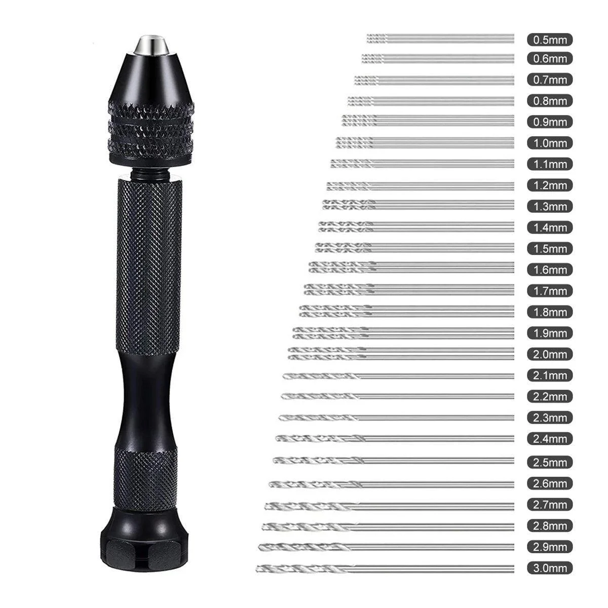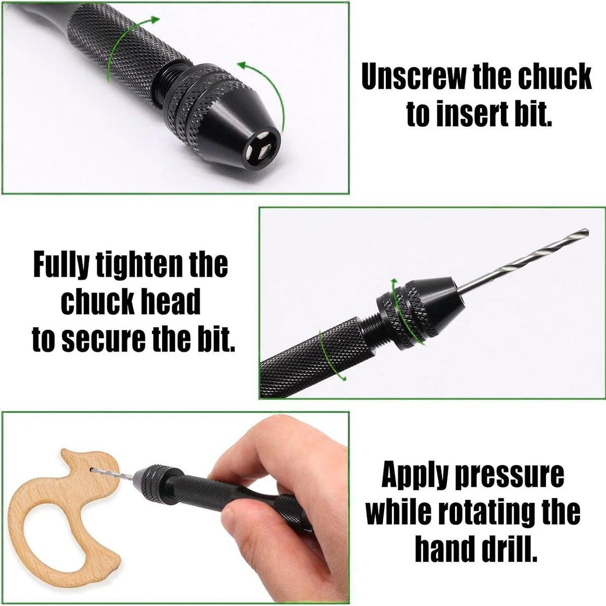Master your precision drilling tasks with the 49pcs Mini Hand Drill Vise Hand Bits Twist Woodworking Set.