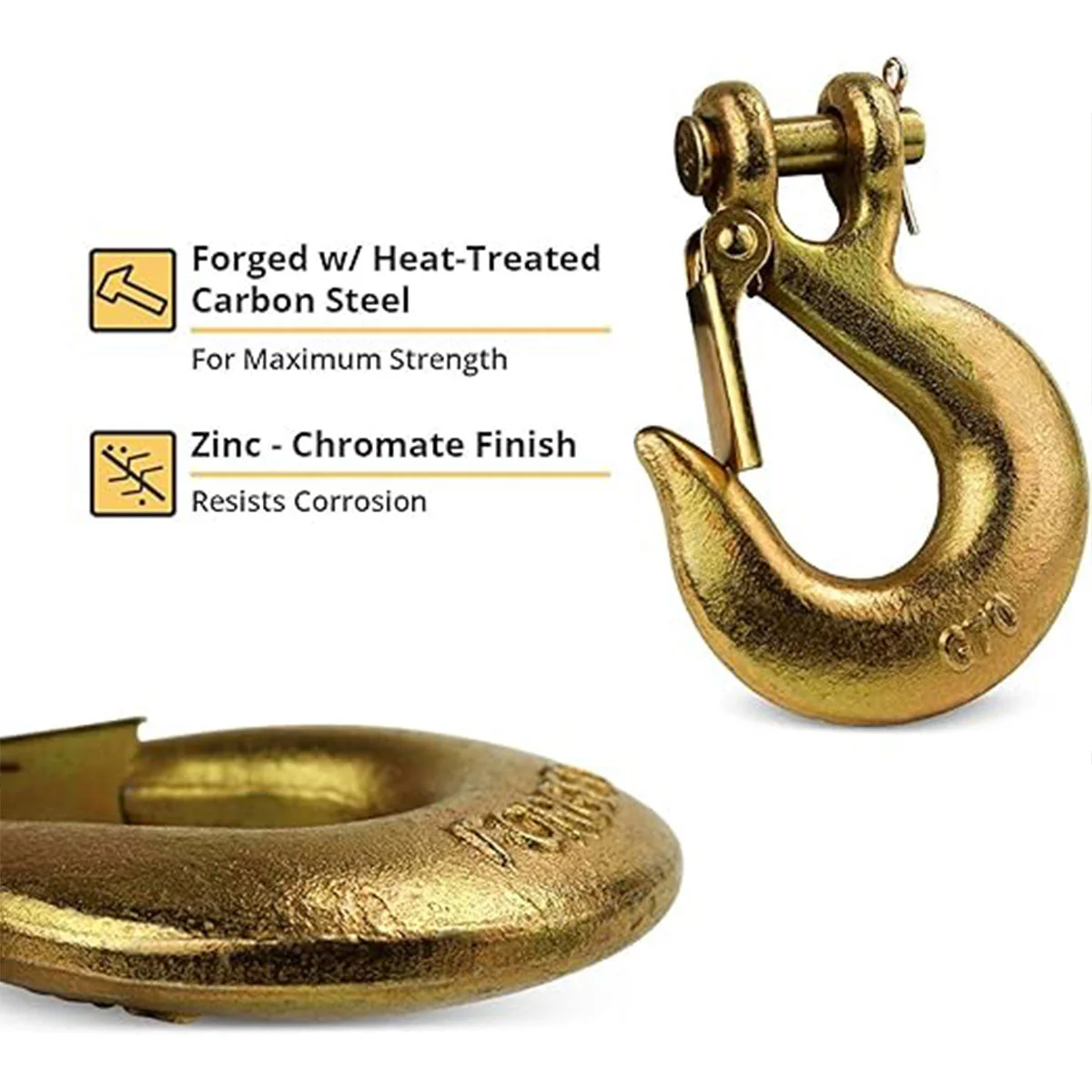 This 4-piece set of lifting hooks enhances lifting and towing tasks.Made of heat-treated carbon steel with a zinc-chromate finish, they resist corrosion and feature secure latches to prevent slips. Suitable for hoisting, towing, chain links, or industrial use, these durable hooks handle heavy-duty jobs reliably.