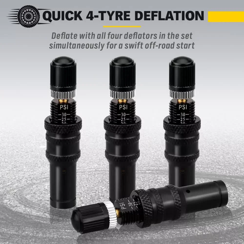 Rapid 4-Tyre Deflation: In a set of four, our automatic tyre deflators effortlessly deflate all four tyres simultaneously for a quick start to your off-road adventure.