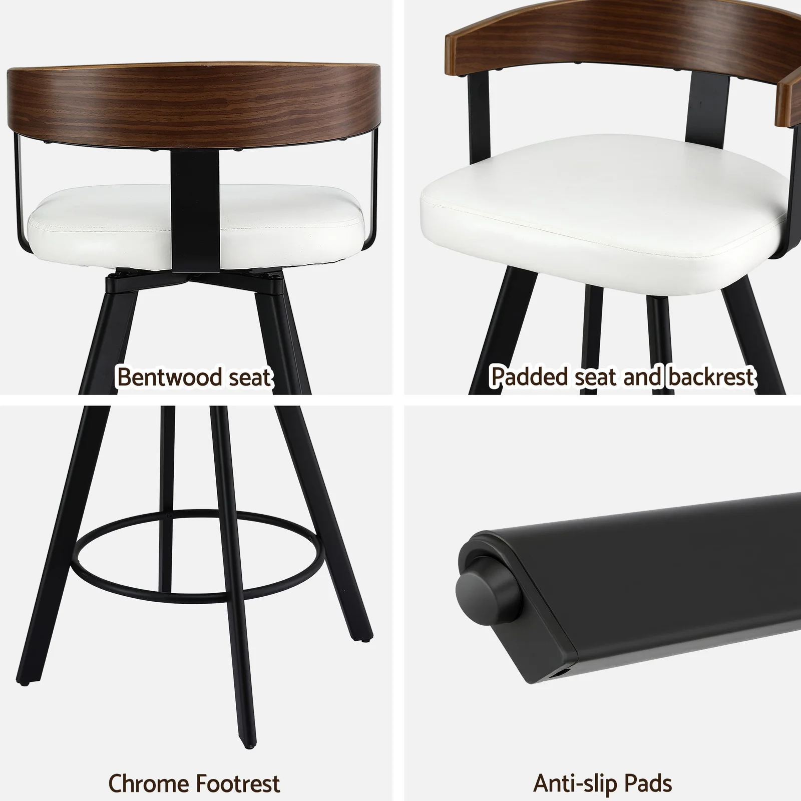 Update your space with the Artiss Bar Stool. Featuring a 360° swivel, walnut bentwood backrest, and luxe white PU leather seat, this counter chair blends style with comfort. Supported by sturdy metal legs with a footrest, it is ideal for breakfast bars and cafes. Modern, durable, and chic design.