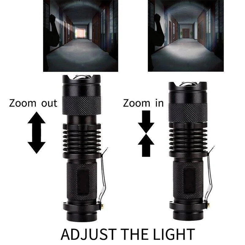 Illuminate your surroundings with the powerful 5/10x Mini Q5 LED Flashlight Torch. Compact and super bright, this flashlight delivers a blinding 1200 lumens output, making it ideal for various outdoor activities such as hunting, cycling, camping, and climbing. Its adjustable focus feature allows you to zoom in and out, tailoring the light beam to your specific needs. Crafted from durable aluminium alloy, this flashlight is both skid-proof and waterproof, ensuring reliable performance in different environments. The handy clip makes it easy to carry, and the wide working voltage maximizes battery use.