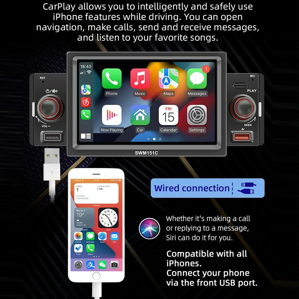 Package Includes: • 1 x 5 Inch Car Mp5 Inch Player With Carplay / Android Auto - Black