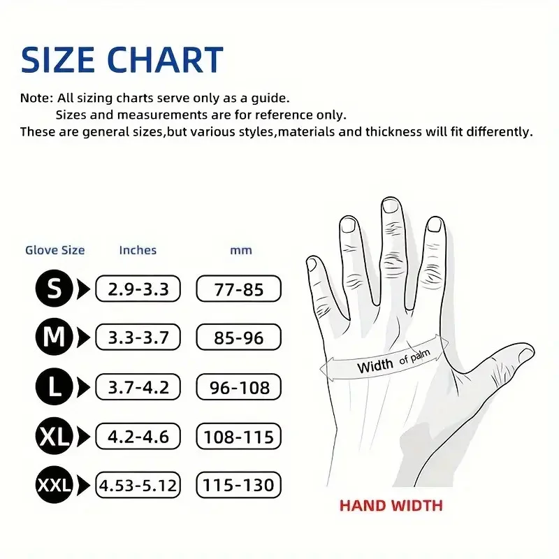 Note: Sizing charts serve as a reference only. Fit may vary depending on material, thickness, and individual hand shape.