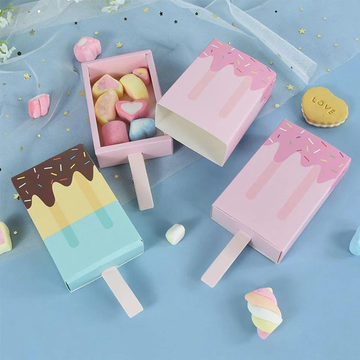 Enhance your party decor and gift-giving experience with these 50PCS Creative Ice Cream Candy Gift Boxes. Designed to look like colourful ice cream popsicles, these boxes are perfect for holding candies, chocolates, and other small treats. Whether you're planning a birthday party, wedding, or any other special occasion, these boxes will add a fun and festive touch.