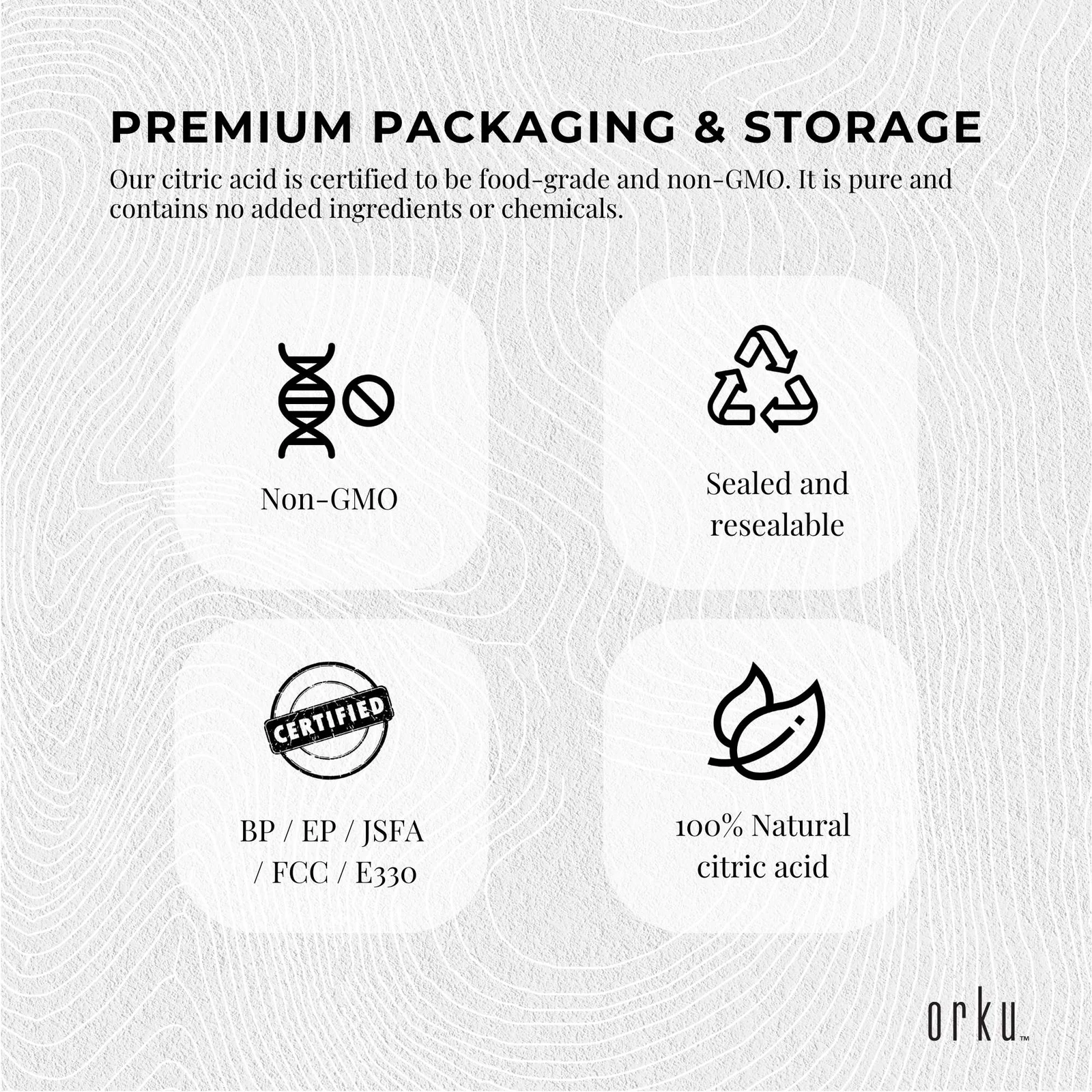 Our Citric Acid is fully compliant Food Grade GMO Free Certified BP / EP / JSFA / FCC / E330. Packages come in sealed buckets.