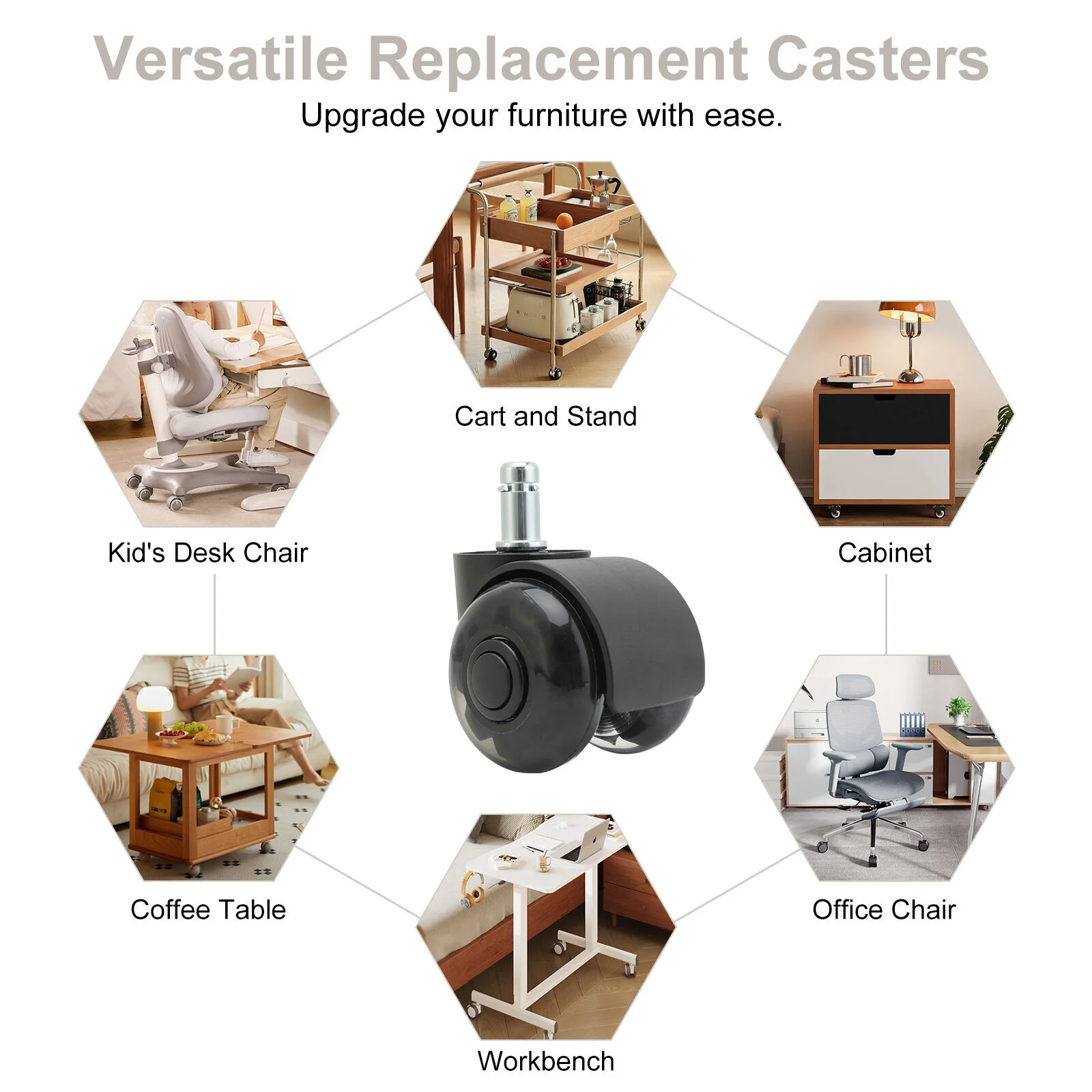Installing these casters is quick and simple. Just insert them into the existing leg socket of your office chair or compatible furniture. The design makes them versatile, fitting most office and gaming chairs.