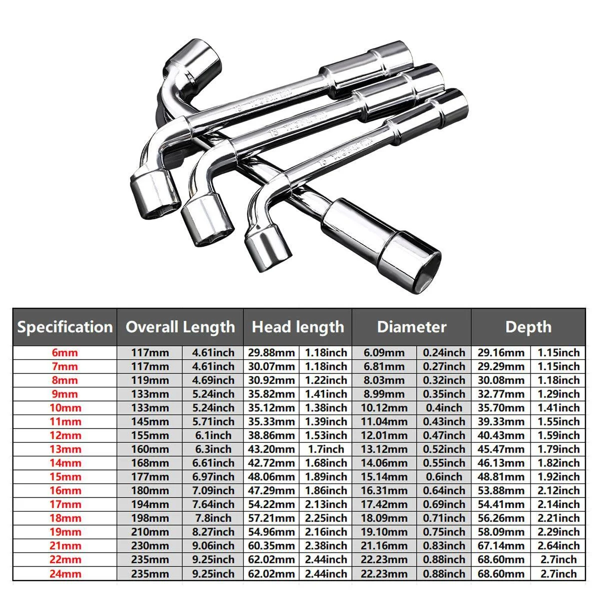 Upgrade your toolkit with this versatile L-shaped socket wrench set, perfect for a variety of automotive and mechanical tasks. Designed with a unique elbow shape for improved leverage and ease of use, these wrenches are suitable for tightening and loosening nuts and bolts in hard-to-reach places. Made from high-quality chrome-vanadium steel, this set offers durability, strength, and resistance to corrosion. Whether for professional mechanics or home DIY enthusiasts, this set is an essential addition to your tool collection.
