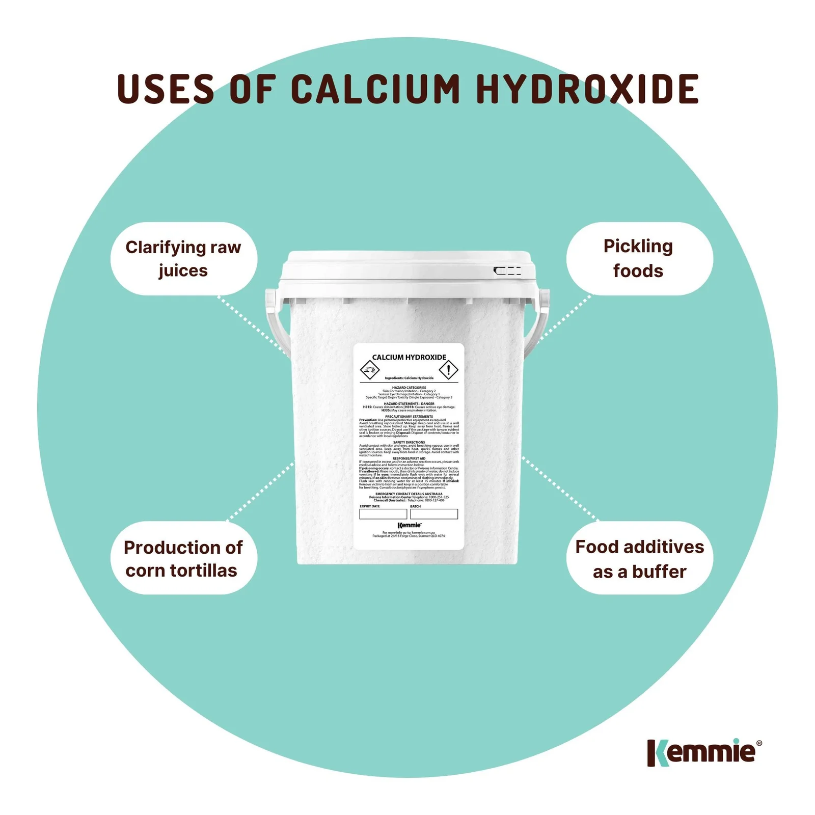 600g Calcium Hydroxide in resealable bucket.