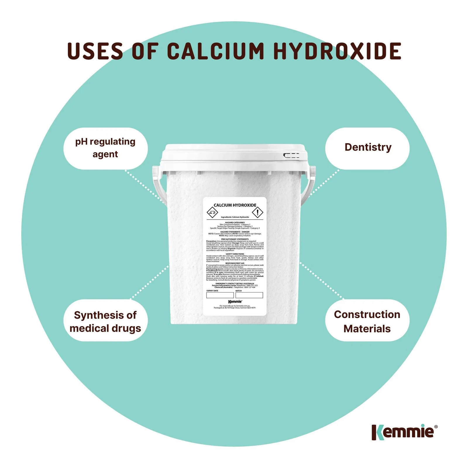 Please Note: Please wear protective gear when handling as calcium hydroxide may cause skin corrosion/irritation, serious eye damage/irritation, respiratory irritation.