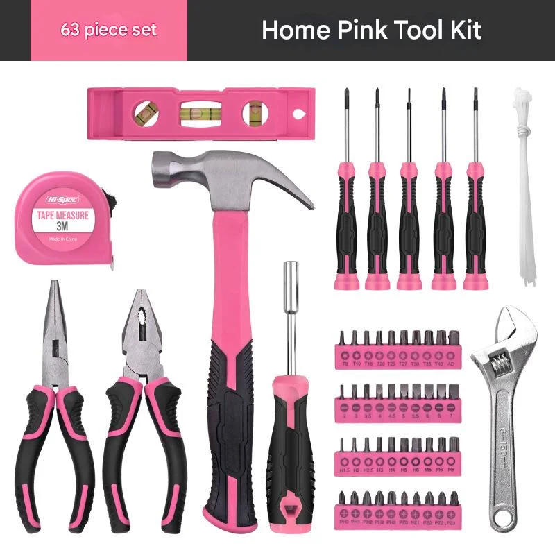 Tackle all your everyday DIY projects and home repairs with this comprehensive 63-Piece Hand Tool Set. Perfect for home maintenance tasks like furniture assembly, picture hanging, leveling, and general repairs, this kit provides high flexibility and simple storage. All tools are crafted for durability and performance, and are neatly organized within a compact and stylish zippered case. The portable case features a comfortable handle, making it easy to store and carry, ensuring you're always prepared for any household task.