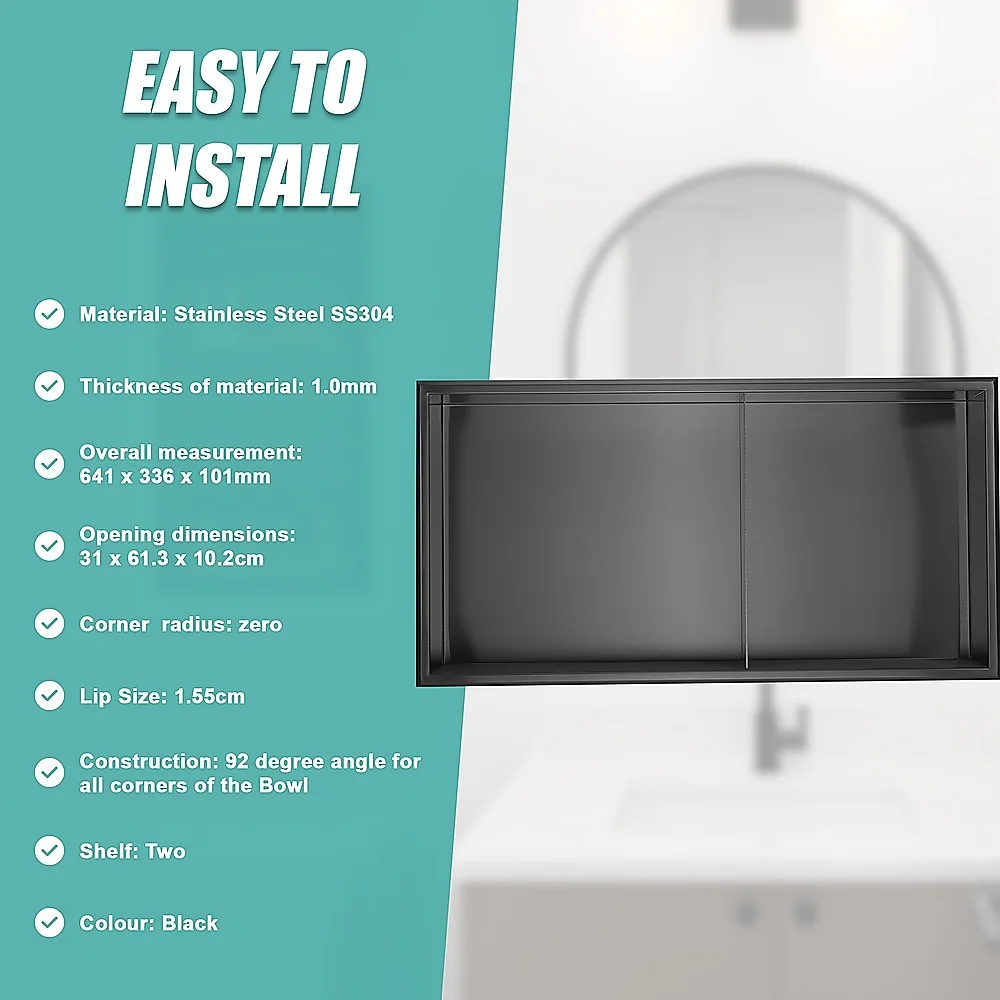 Upgrade your bathroom with our 641 x 336 x 101mm Shower Niche Double Shelf Organizer - no tile needed!