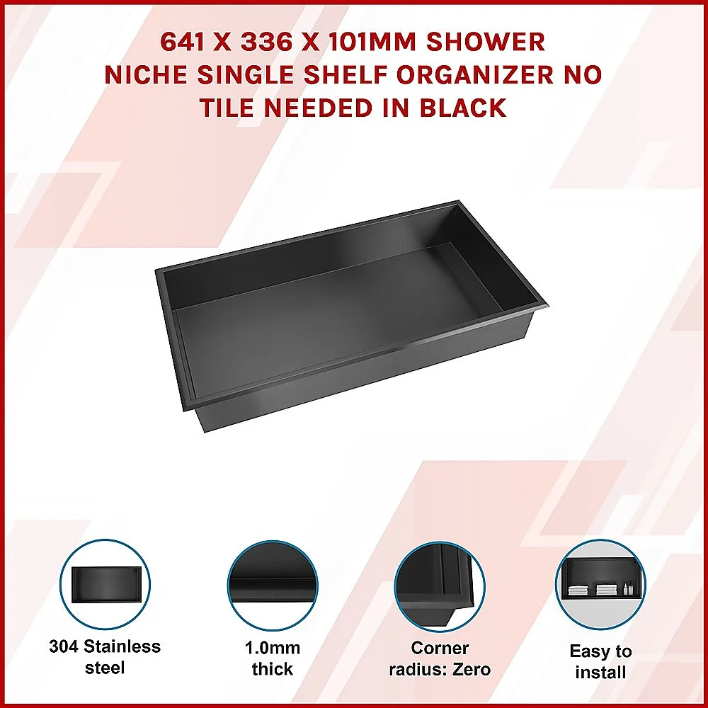 Give your bathroom a makeover with our 641 x 336 x 101mm Shower Niche Single Shelf Organizer, no tiling required!