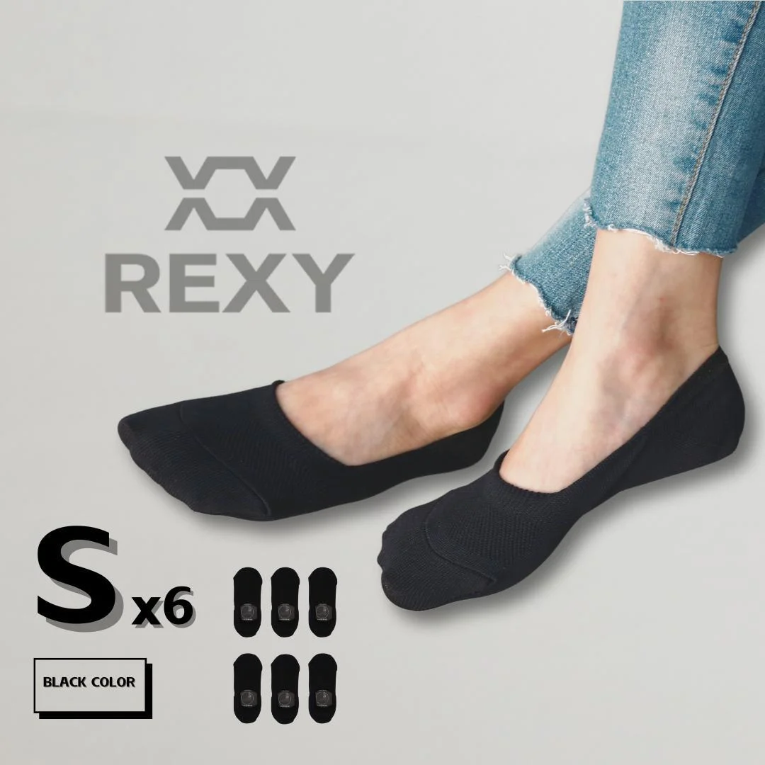 Rexy 6 Pack Cushion No Show Ankle Socks Non-Slip Breathable Small - Black