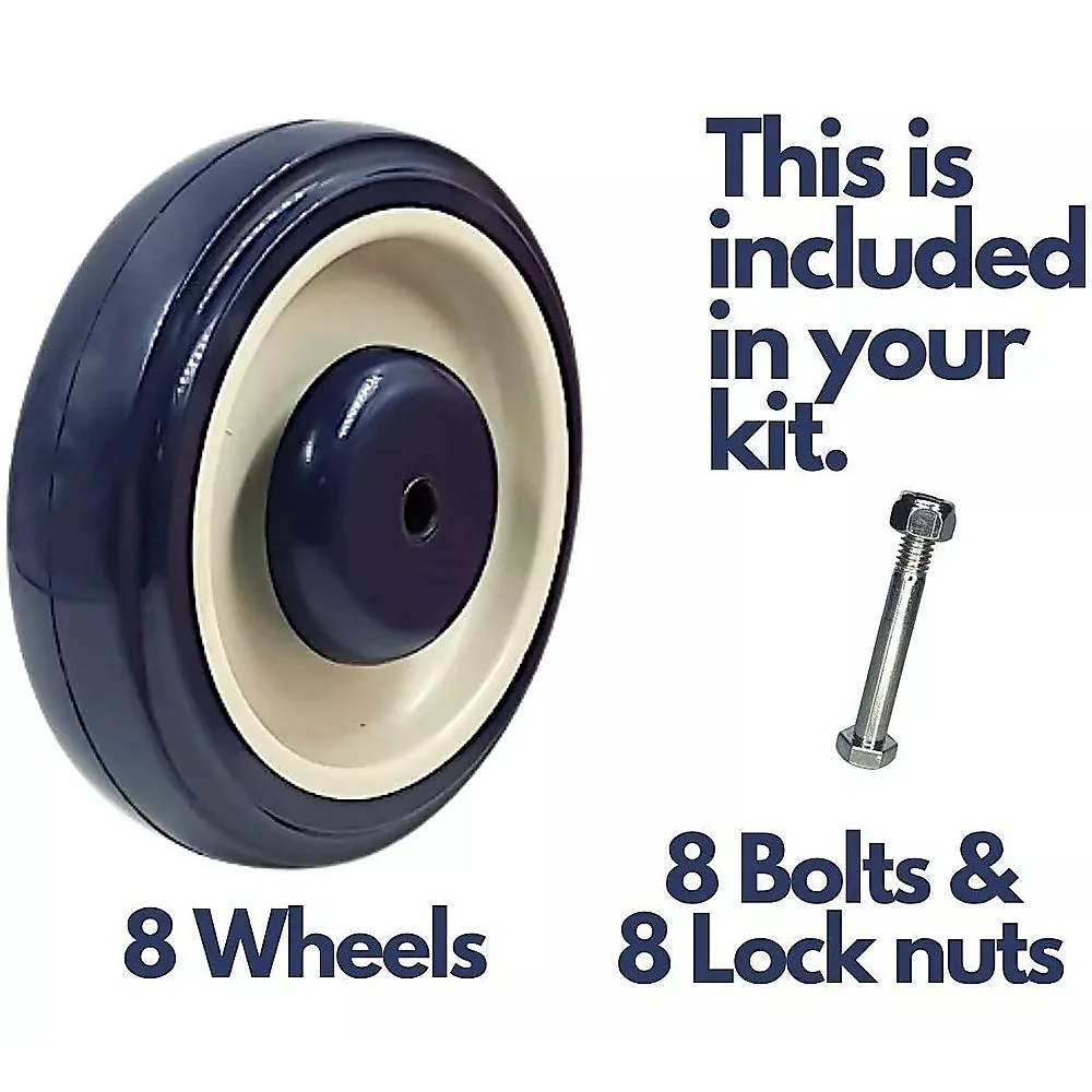Upgrade your cart's mobility with our 5 replacement shopping cart wheels, crafted from premium polyurethane for exceptional durability, wear resistance, and shock absorption. These wheels roll silently and smoothly, leaving no marks while enhancing impact resistance for long-lasting performance.