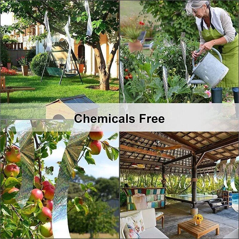 Protect your crops, fruit trees, or outdoor spaces with this reflective bird repellent tape, designed to deter birds using light reflection and gentle sound movement. Made from durable PET polyester film, this double-sided flash tape is highly effective in Australian gardens, orchards, vineyards, and even suburban patios. As the wind moves the tape, it reflects light in multiple directions and produces subtle rustling noises, naturally discouraging birds without chemicals or harm. Ideal for use around fruit trees, vegetable patches, rooftops, balconies, sheds, and other vulnerable outdoor areas.