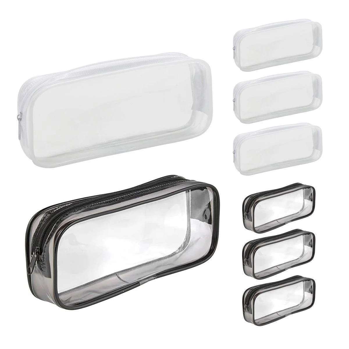 8 x Waterproof Transparent Zipper Pencil Cases ( black*4,white*4)