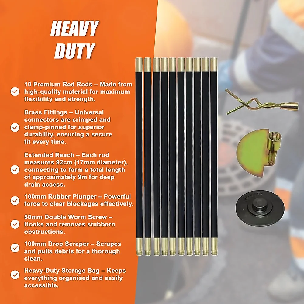Tackle tough blockages with our Industrial-Grade Drain Rod Kit, designed for both professional tradespeople and home users. Whether you're a plumber, builder, or DIY enthusiast, this durable and versatile kit is built to handle the job.