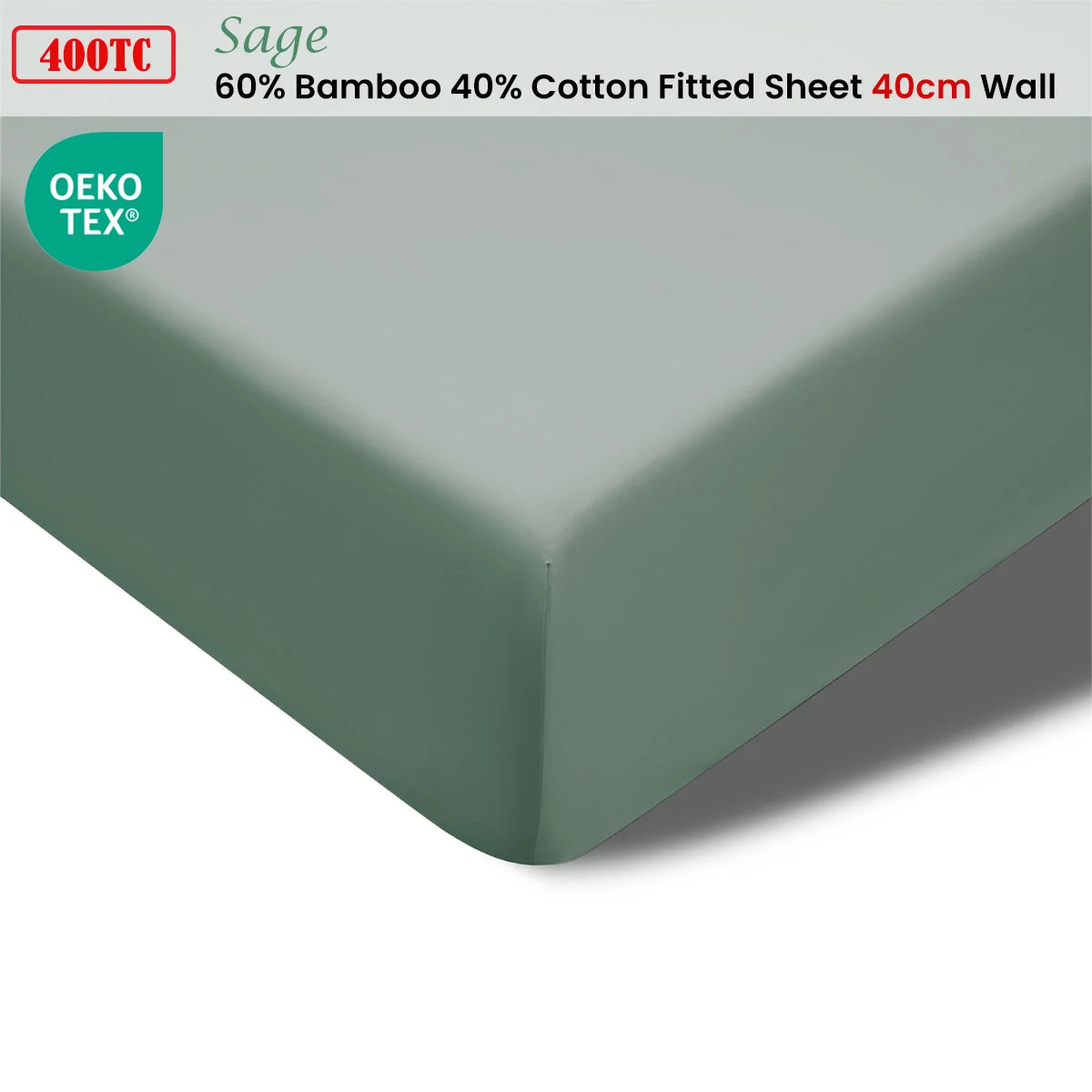 The 400TC Sage Bamboo Cotton Fitted Sheet 40cm Wall by Accessorize is a perfect blend of Bamboo and cotton in a luxurious 400TC sateen weave. Our sheets are a blend of 60% Bamboo and 40% cotton with a smooth, silky soft finish. Both fibres are temperature regulating and will keep you cool in summer and warm in winter. The fabric is naturally hypoallergenic and perfect for sensitive skin.