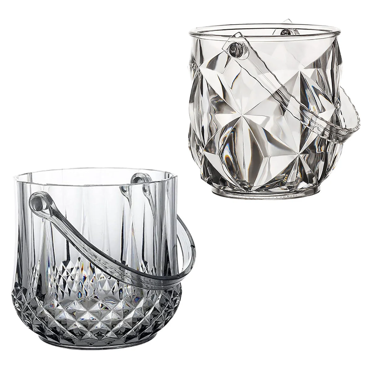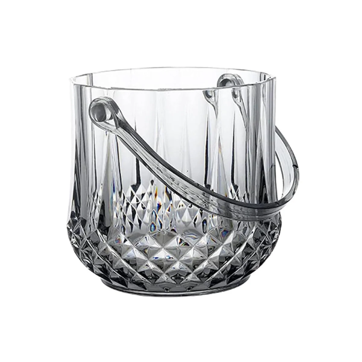 This stylish acrylic ice bucket features a crystal-clear finish with diamond or crystal patterns for a premium look.Designed for home bars, parties, and special occasions, it keeps beverages chilled and accessible.The detachable handle ensures easy transport, while the included clip adds serving convenience.Its thick, transparent body provides both durability and elegance, perfect for any setting from bars to milk tea shops.