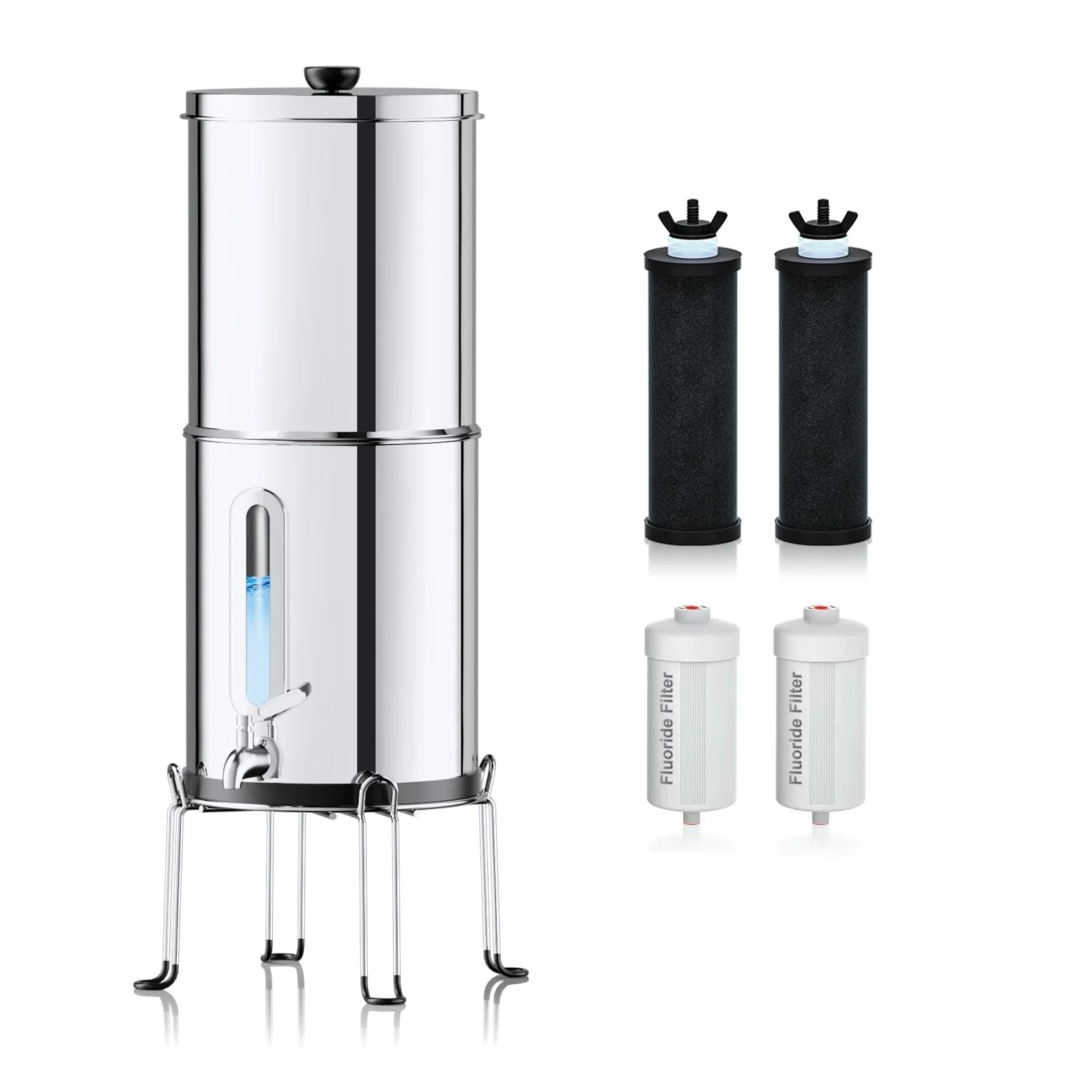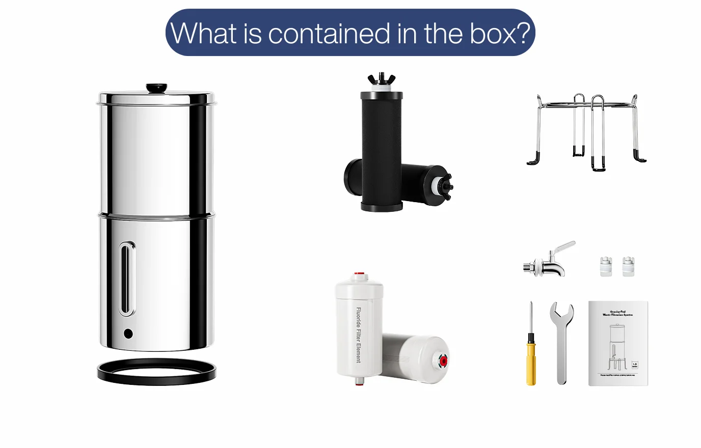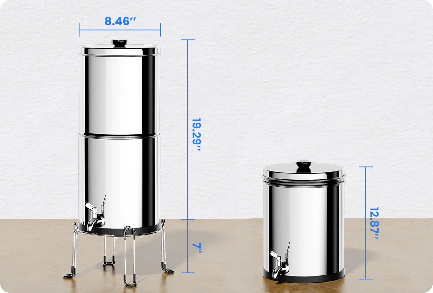 This gravity water filtration system effectively makes water from unreliable sources drinkable at a lower cost. It requires no additional tools and operates automatically, providing healthy, pure water from any source like tap water.