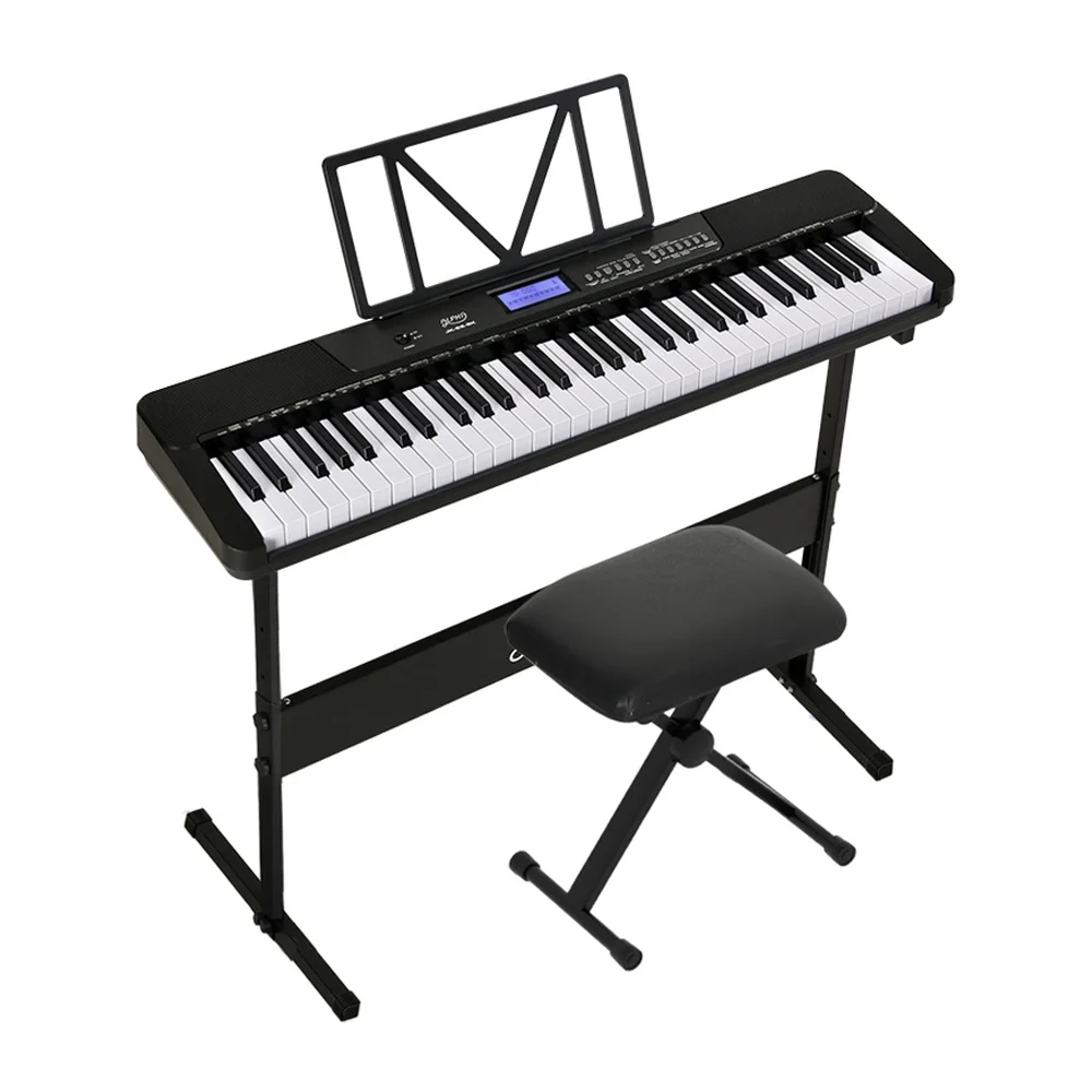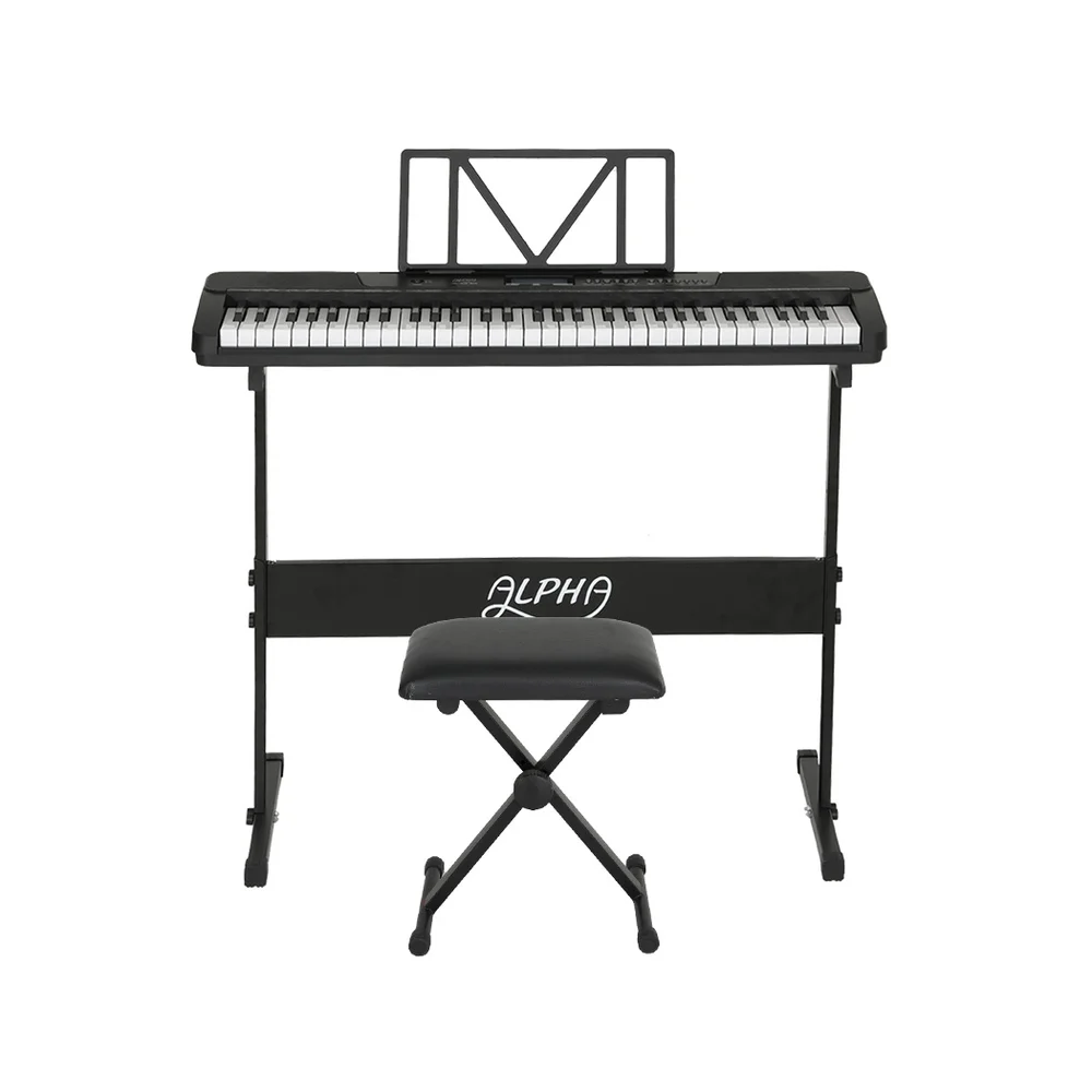 Do you love music? Do you want to spend your day playing and singing your favourite songs? Let the Alpha 61-key Electric Keyboard help to realize your musical aspirations. With 61 touch-sensitive keys, the Alpha Portable Keyboard enables you to discover a whole new world of music with some of these exceptional built-in features: 300 rhythms, 430 timbres, 50 demo songs, various effects controls, and much more. A clear LED display makes it easy to observe your keyboard functions. Three-step lessons allow you to learn new songs with ease. The Alpha Keyboard allows you to record and play back your music for all to hear, and it is equipped with three status memories for ease of use. Your package also includes an adjustable keyboard stand, a sheet music holder and a sustain pedal. Cultivate your love of music with an Electric Keyboard from Alpha.