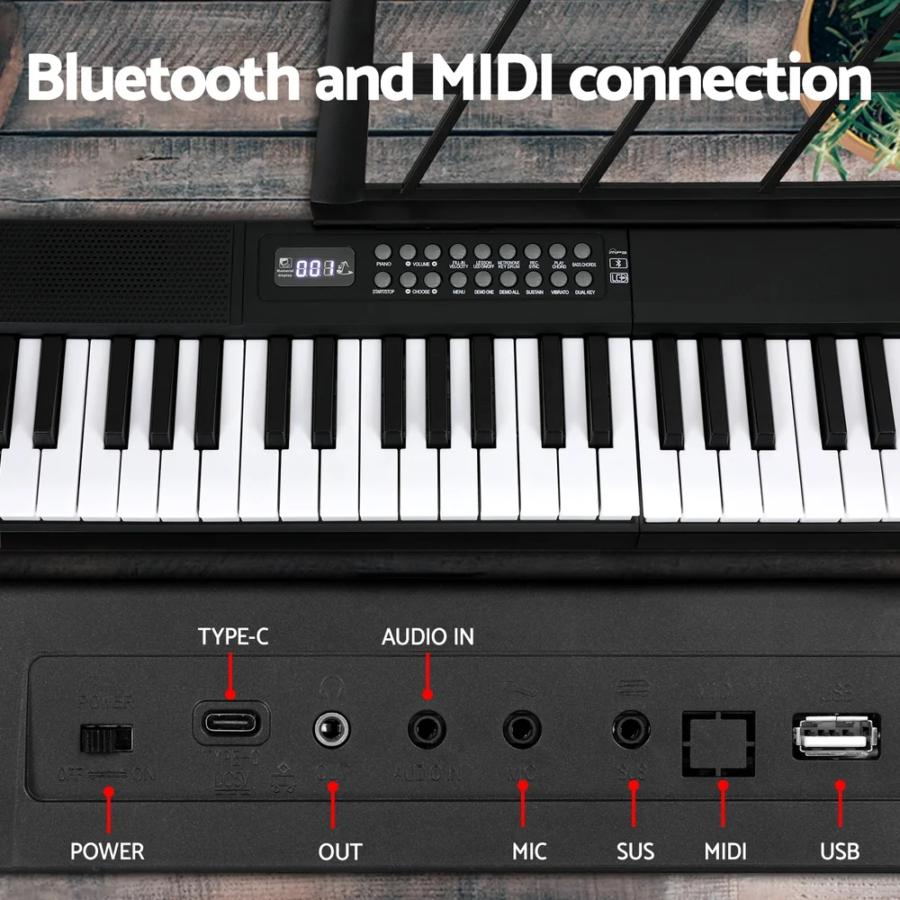 Do you love music? Do you want to spend your day playing and singing your favourite songs? Let the Alpha Electric Keyboard help to realize your musical aspirations. With 61 touch-sensitive keys, the Alpha Keyboard enables you to discover a whole new world of music. Some of these exceptional built-in features include: 200 rhythms, 200 timbres, 80 demo songs, various effects controls, Bluetooth connection, and much more. With a MIDI out&USB function, you can plug and play to other devices or computers. With various inputs for microphone and headphones as well as speaker outputs, the Alpha Keyboard allows you to record and playback your music for all to hear. Best of all, the keyboard has a convenient folding design so you can store it away with ease. Your package also includes a microphone. Cultivate your love of music with an Electric Keyboard from Alpha.