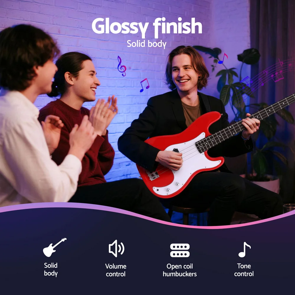 Unleash your inner rockstar with the Alpha Electric Guitar. This striking red guitar boasts a glossy finish and a comfortable basswood body paired with a hard maple wood neck, perfect for hours of playing. Featuring open coil humbuckers and 21 frets, this electric guitar delivers a rich, powerful sound. Ideal for beginners, this 47 inch guitar comes complete with essential spare parts, including a gig bag, cable, strap, picks, and extra strings, ensuring you're ready to play right out of the box.
