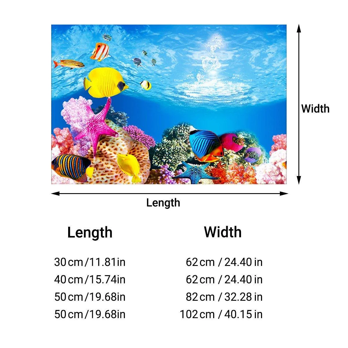 50cm x 102cm (19.68in x 40.15in)Applicable for: Freshwater and Marine Aquariums