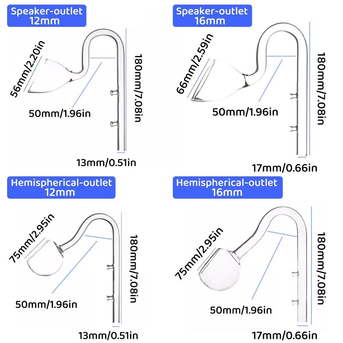Hemispherical-Outlet 12mm: 180mm/7.08in height, 75mm/2.95in width