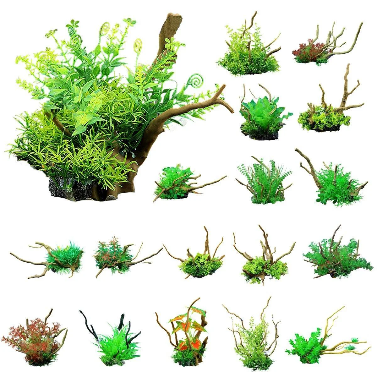 Realistic Design: Each piece is crafted with attention to detail, mimicking natural wood and aquatic plants to create a lifelike underwater landscape.?
