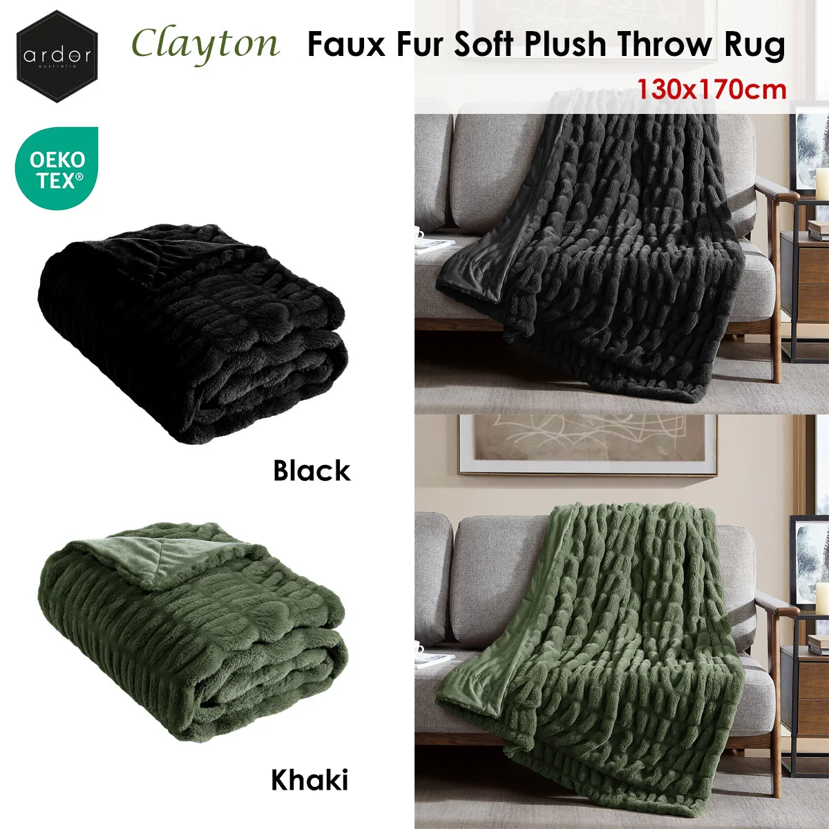 Experience the lavish softness and warmth of our Ardor Clayton Faux Fur Soft Plush Throw Rug 130x170cm, crafted from plush patterned elastic faux fur paired with a plain dyed plush mink reverse. Its patterned and reversible design complements any home decor, be it traditional or modern.