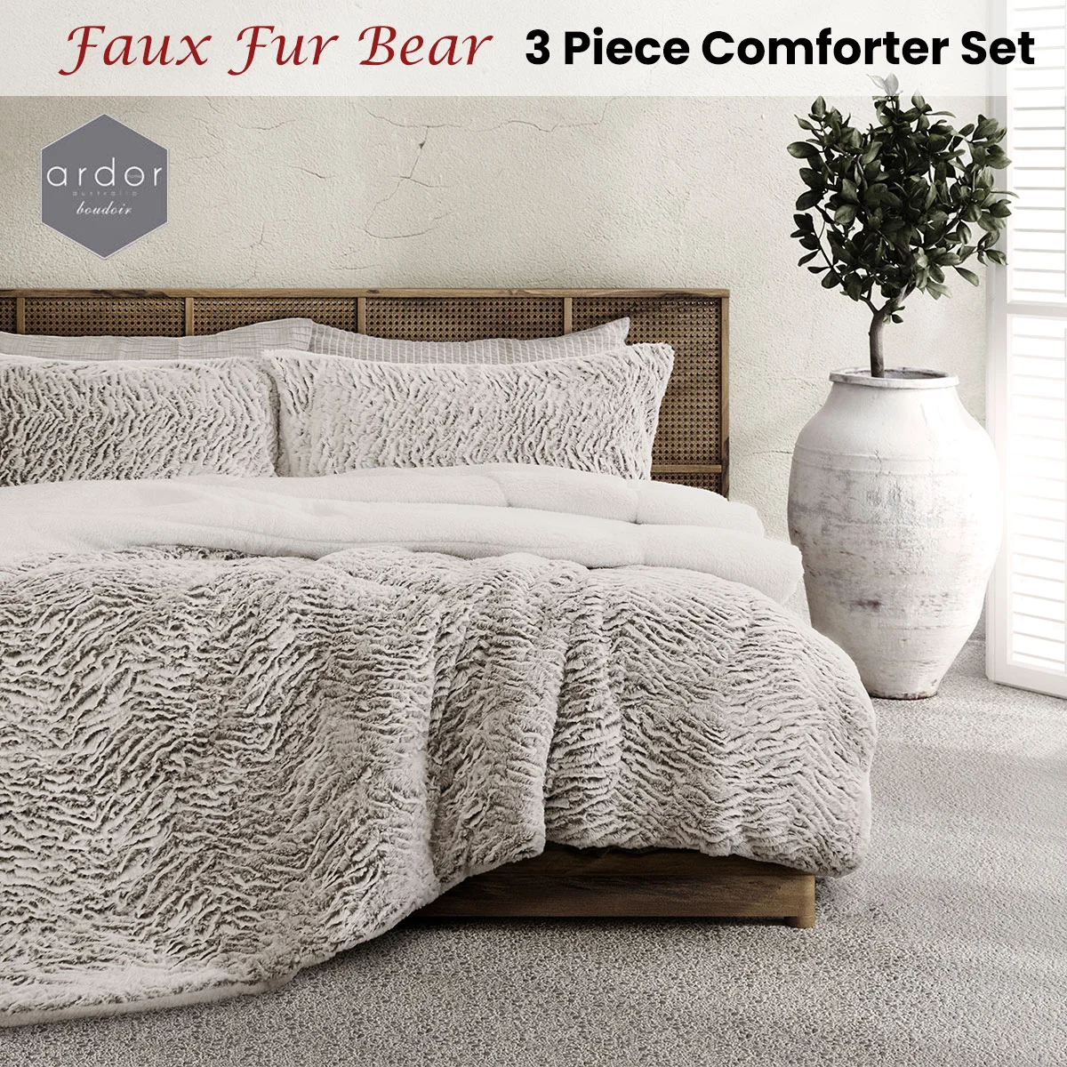 This winter, the Faux Fur Bear 3 Piece Comforter Set by Ardor brings a sense luxury and comfort to your home. The soft faux fur texture will add subtle tonal textures of white and brown hues to blend with your existing linen. Featuring a cosy sherpa reverse for those colder nights.