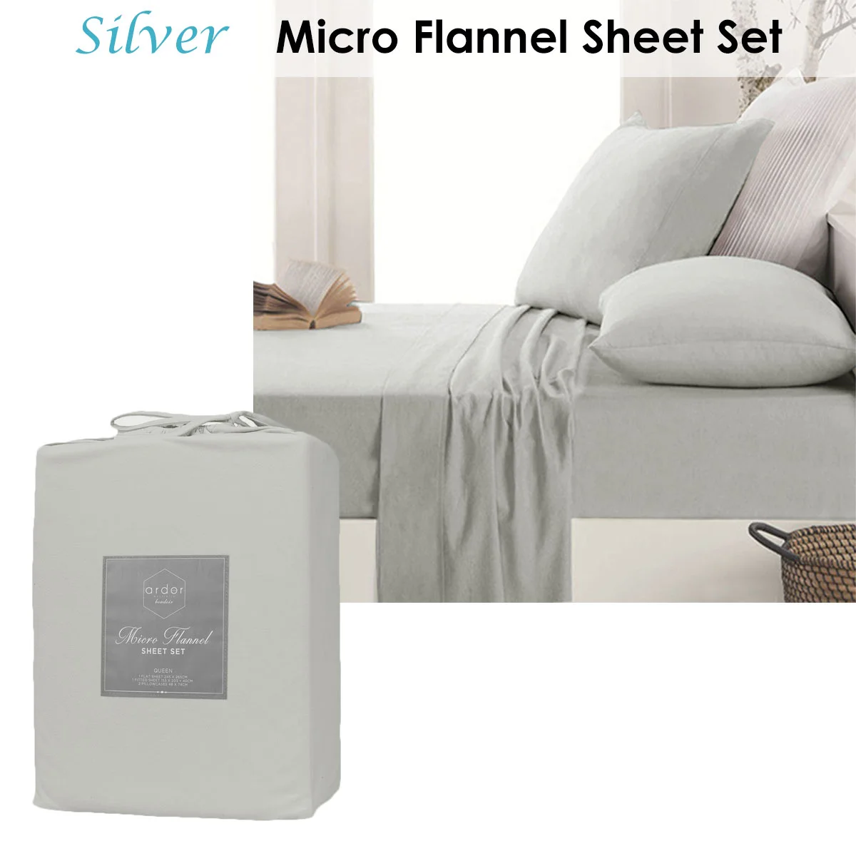 For simplicity and timeless design to your bedroom, nothing beats this fresh and crisp Micro Flannel Sheet Set Silver by Ardor. This sheet adds extra layer of warmth and comfort as you relax or sleep. It features a classic solid colour design in soft neutral colour tone that makes your bedroom feel more welcoming. It is made from quality and easy care Polyester fabric that is soft against your skin.