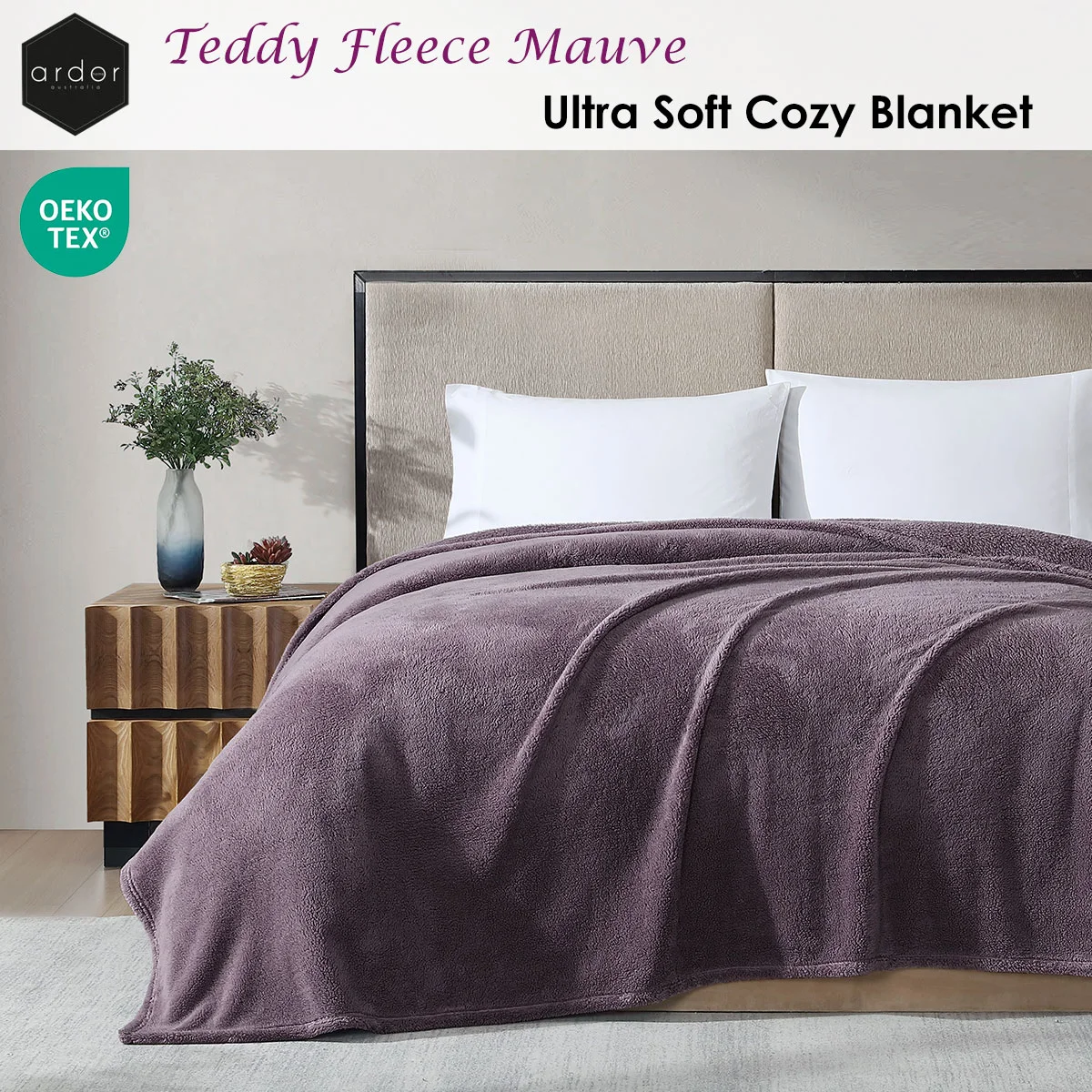 Approx. 260GSM. Snuggle up with the ultimate comfort of the Ardor Teddy Mauve Ultra Soft Cozy Fleece Blanket . Made from ultra-soft teddy fabric, this cozy throw is perfect for keeping warm while adding a plush, textured look to your space. Ideal for your sofa or bed, it's the perfect blend of warmth and style.