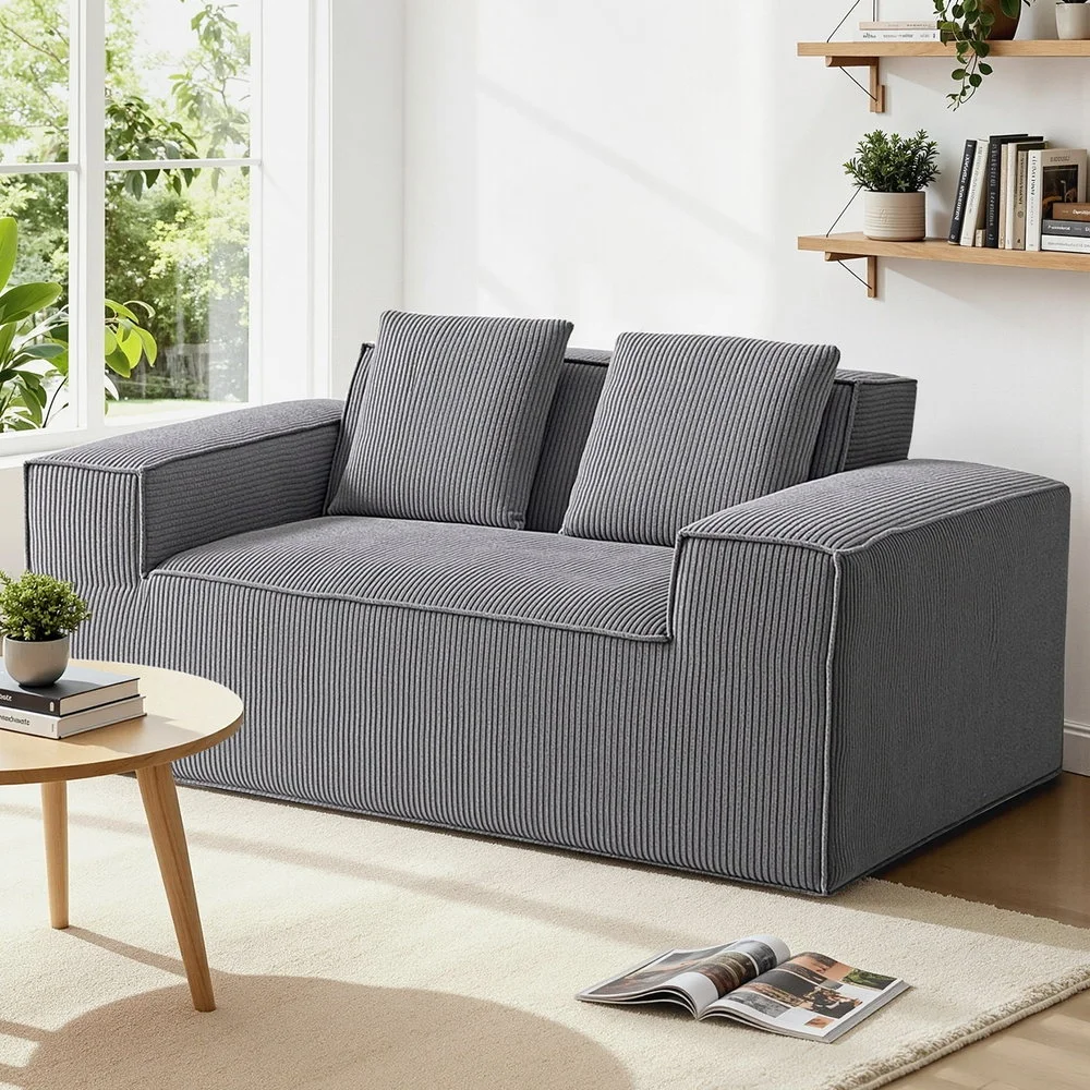Forget the hassle of furniture delivery and complex assembly. This Artiss love seat couch arrives conveniently vacuum packed for easy transport and requires no assembly. Experience superior comfort and support from its pocket spring core and high-density foam construction. Wrapped in a plush grey corduroy sofa fabric, it includes 2 bonus cushions. Simply allow 48 hours to fully expand, and it is ready for you.