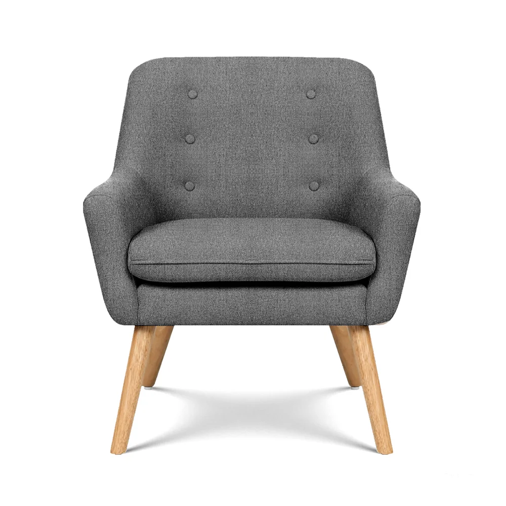Upholstered in quality polyester, the Anne Armchair is a full size chair with generous seating space. The extra thick foam padding ensures ultimate comfort with exceptional support while the tufted backrest adds an array of luxurious highlights to the overall character of the armchair. Together with a reinforced wooden frame and sturdy tapered rubber wood legs, the Anne Armchair is guaranteed to stand up to durable use for many years to come. Not least, with its neutral tones, the Anne Armchair is a seamless match for any home décor.